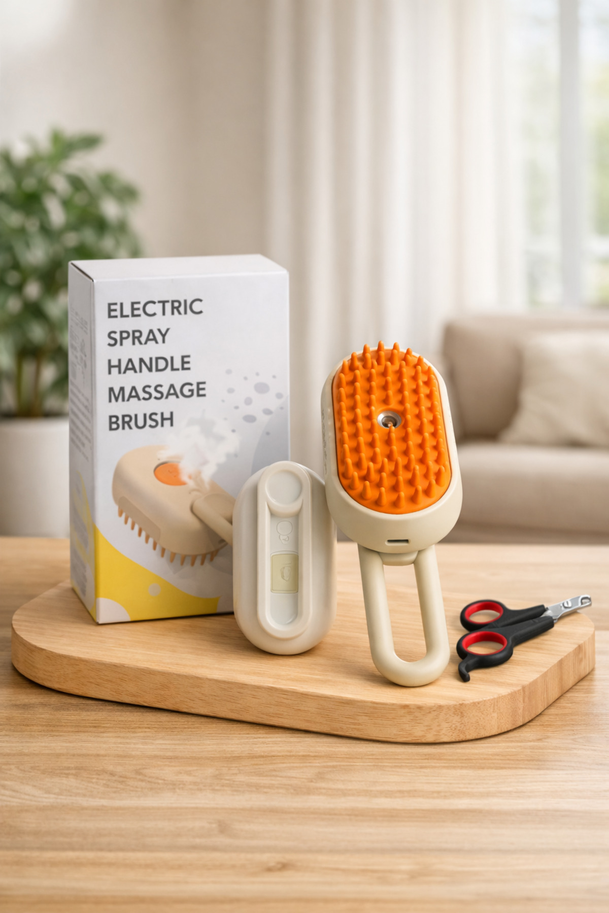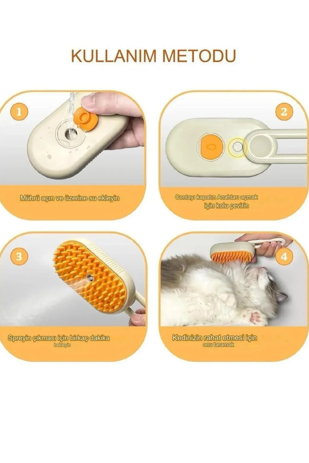 PawX Saplı Buharlı Kedi & Köpek Tüy Toplama Fırçası Tarağı Yumuşak Silikonlu | Tırnak Makası Hediyeli