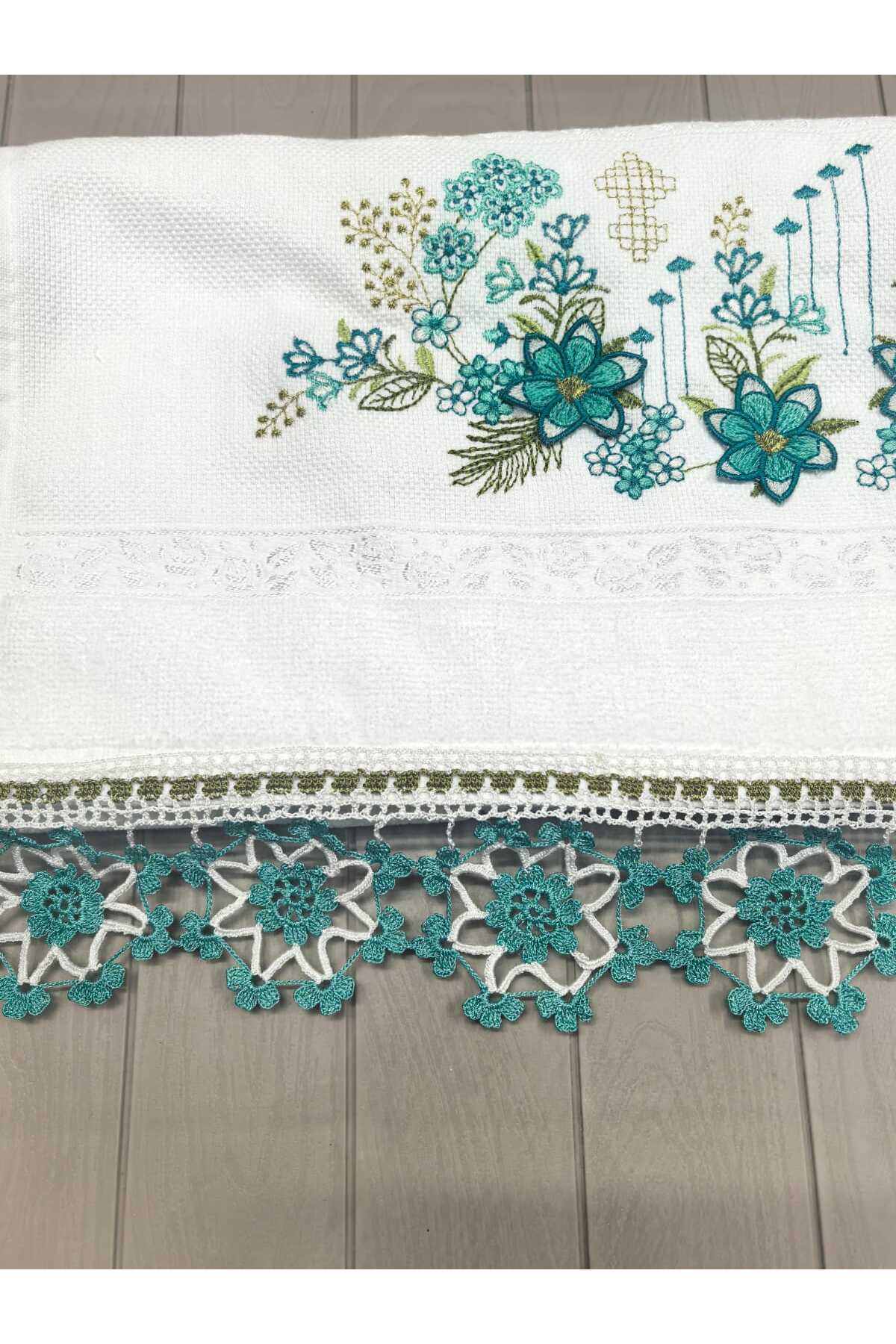 Peacock El Yapımı , El işi Güpürlü Oyalı Nakışlı Havlu 50×90 Premium Pamuklu 240gr