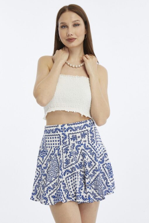 Pek Moda Kadın Mavi Beyaz Viskon Kumaş Kaliteli Günlük Plaj Yazlık Mini Şort Etek Fiyatları, Özellikleri ve Yorumları