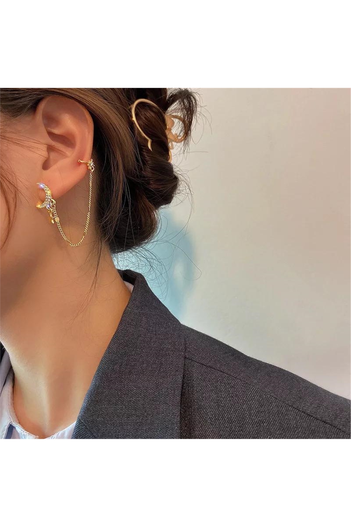 Pelin Aksesuar Ay Yıldız Piercing Küpe