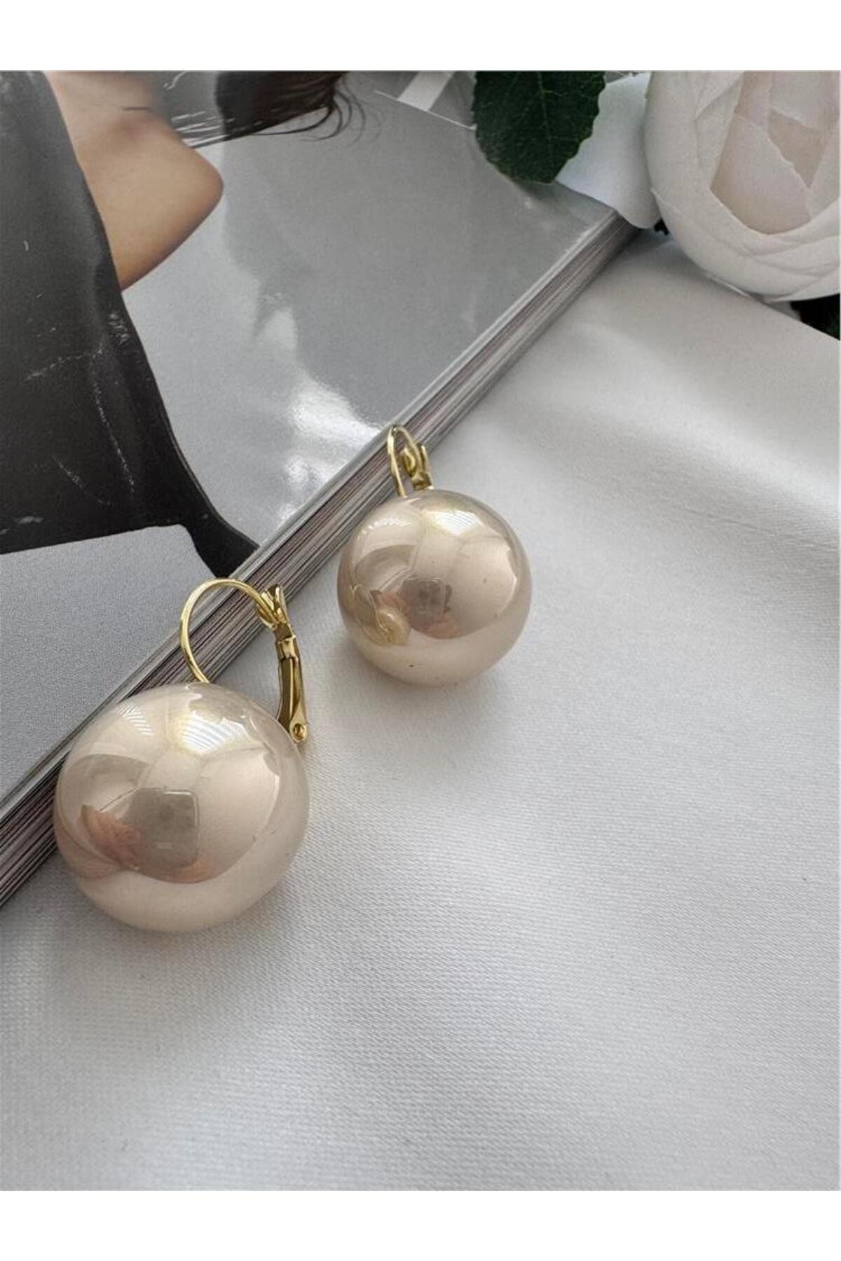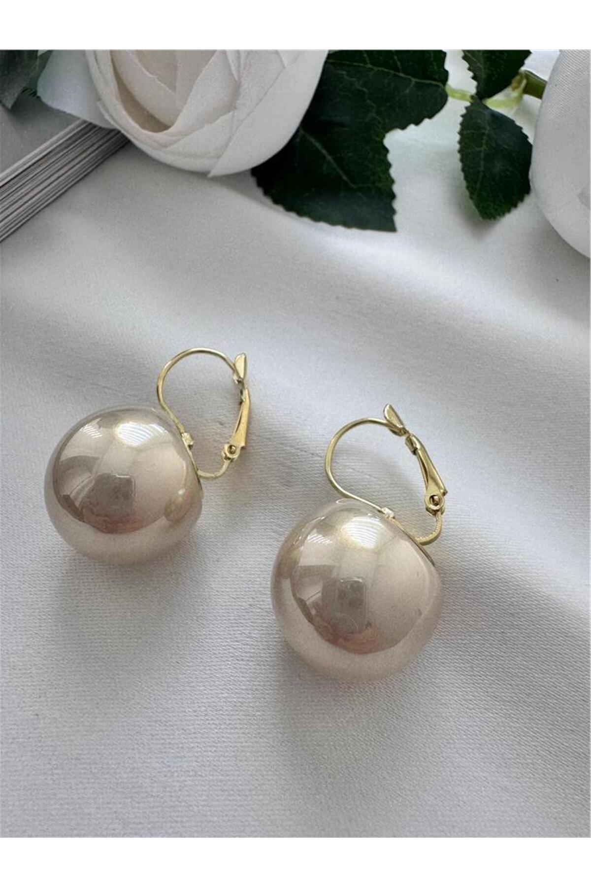 Pelin Aksesuar Bej Top İncili Küpe