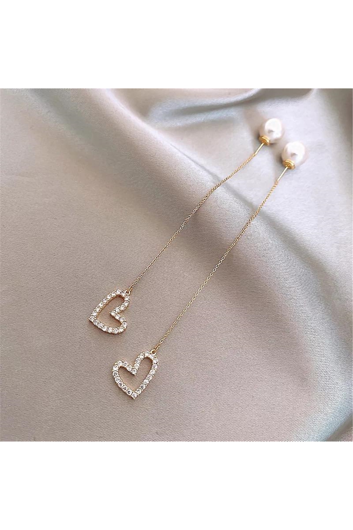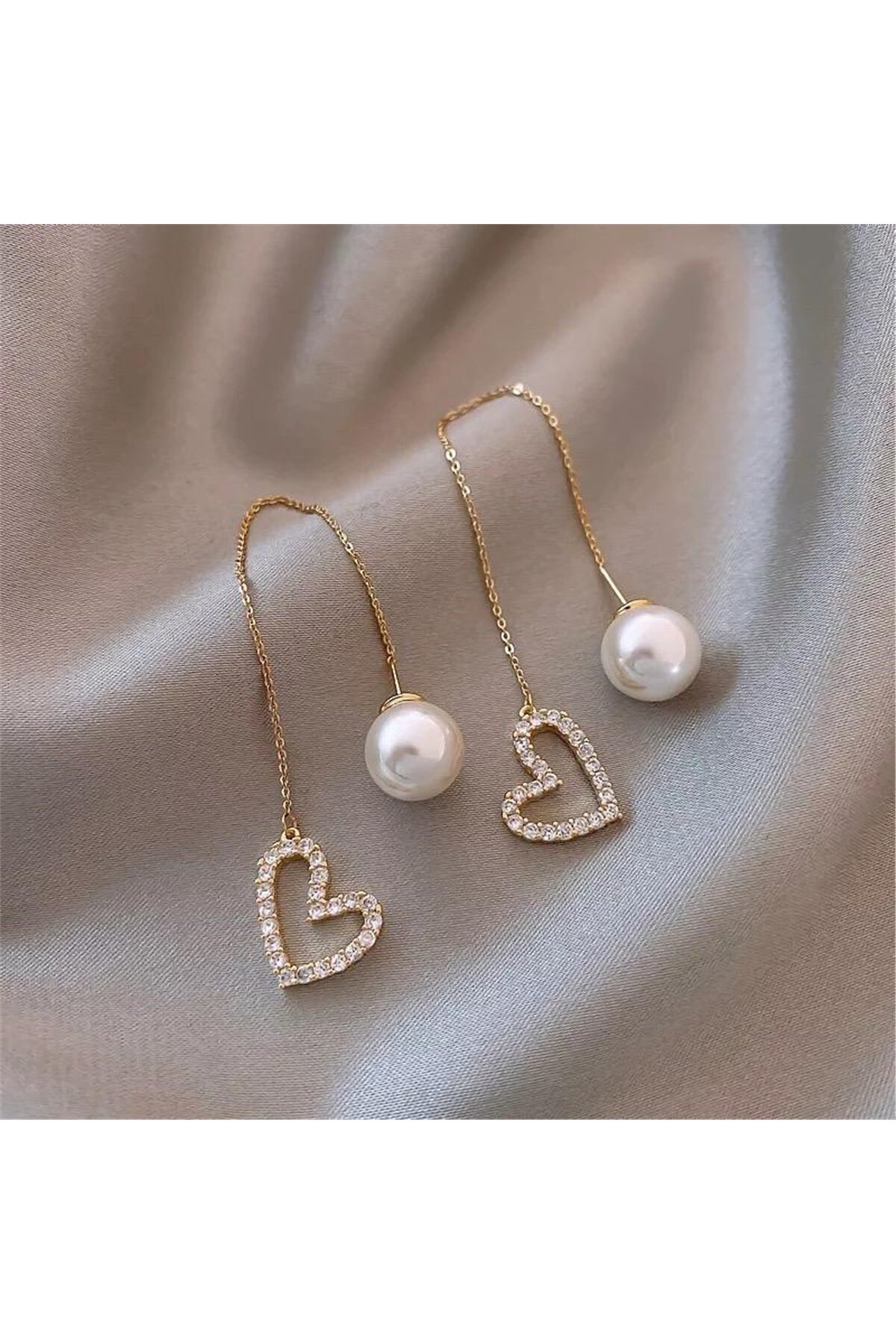 Pelin Aksesuar İncili Ve Kalp Figürlü Zincirli Küpe