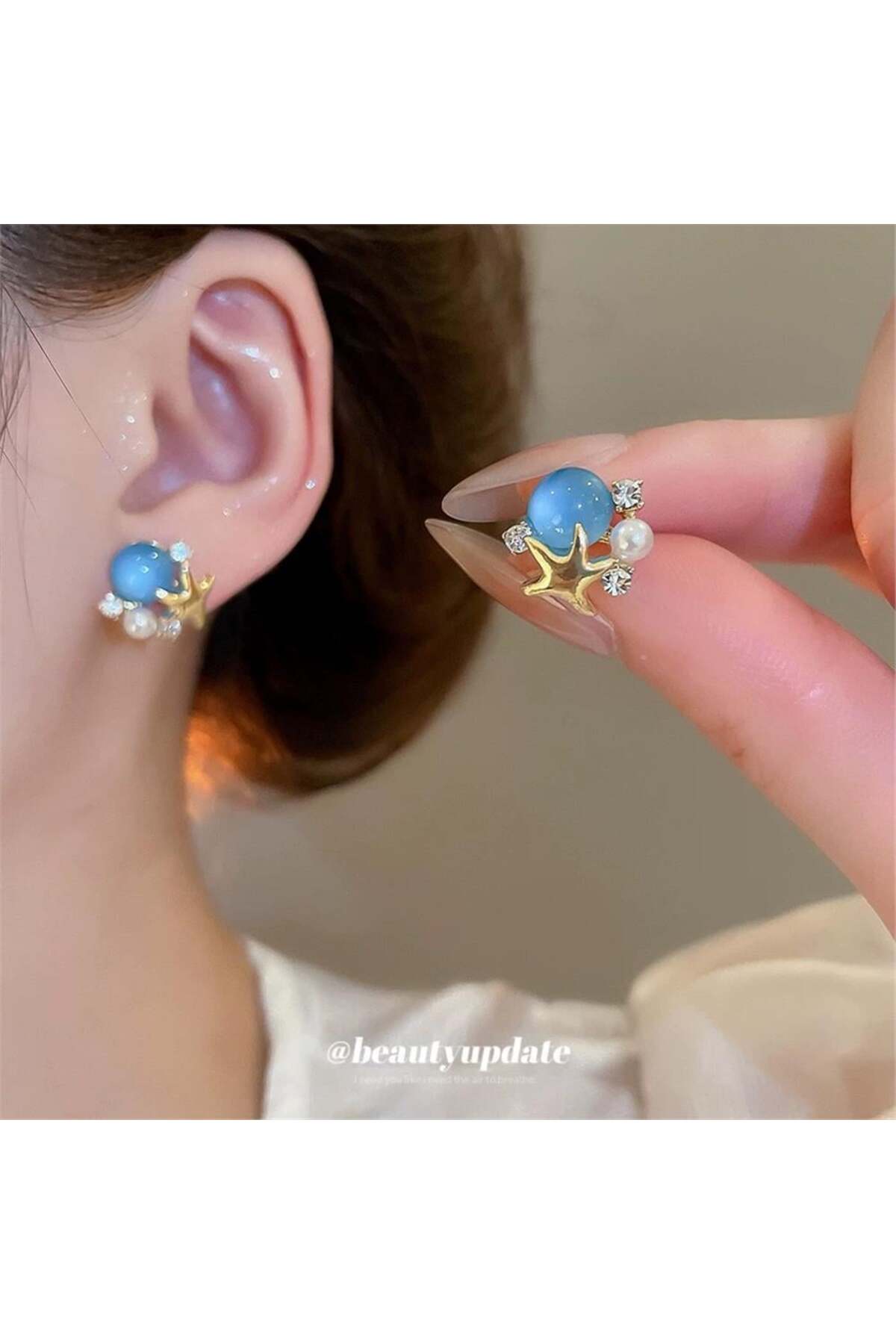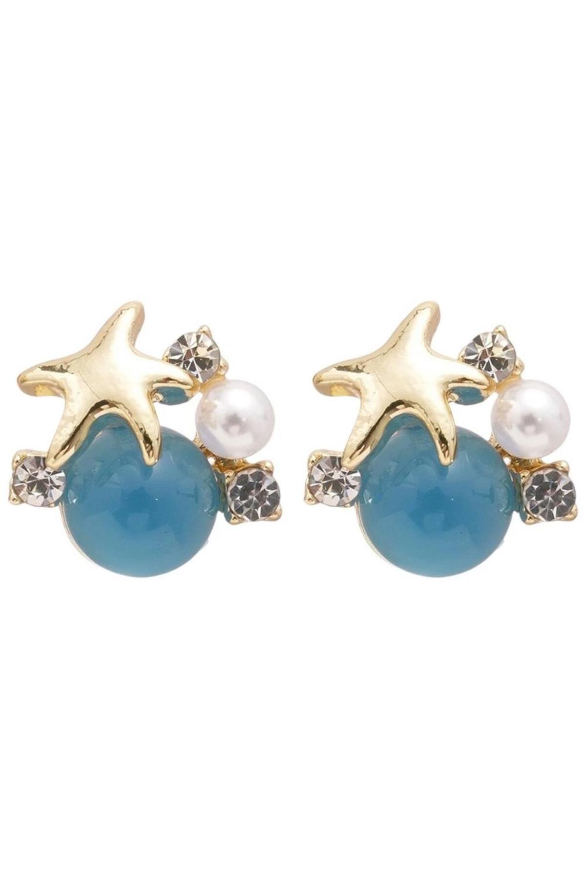 Pelin Aksesuar Mavi Gold Deniz Yıldızlı Küpe