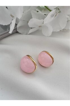 Pelin Aksesuar Pembe Alacalı Taşlı Bombeli Küpe