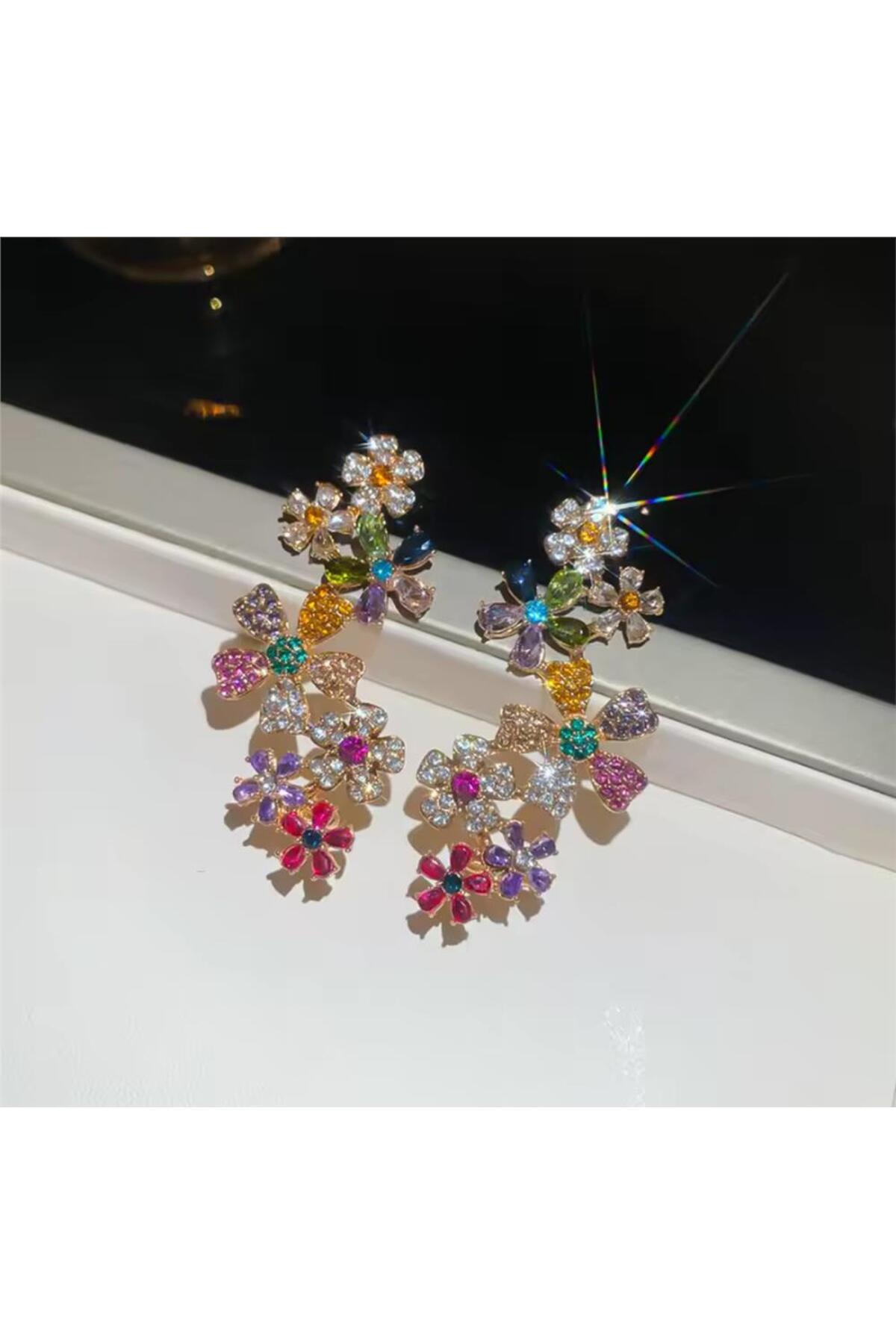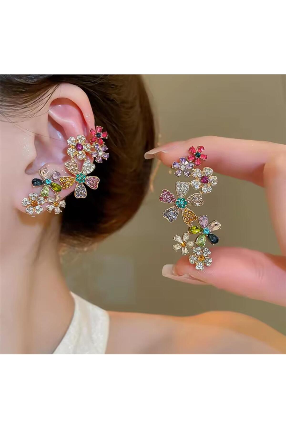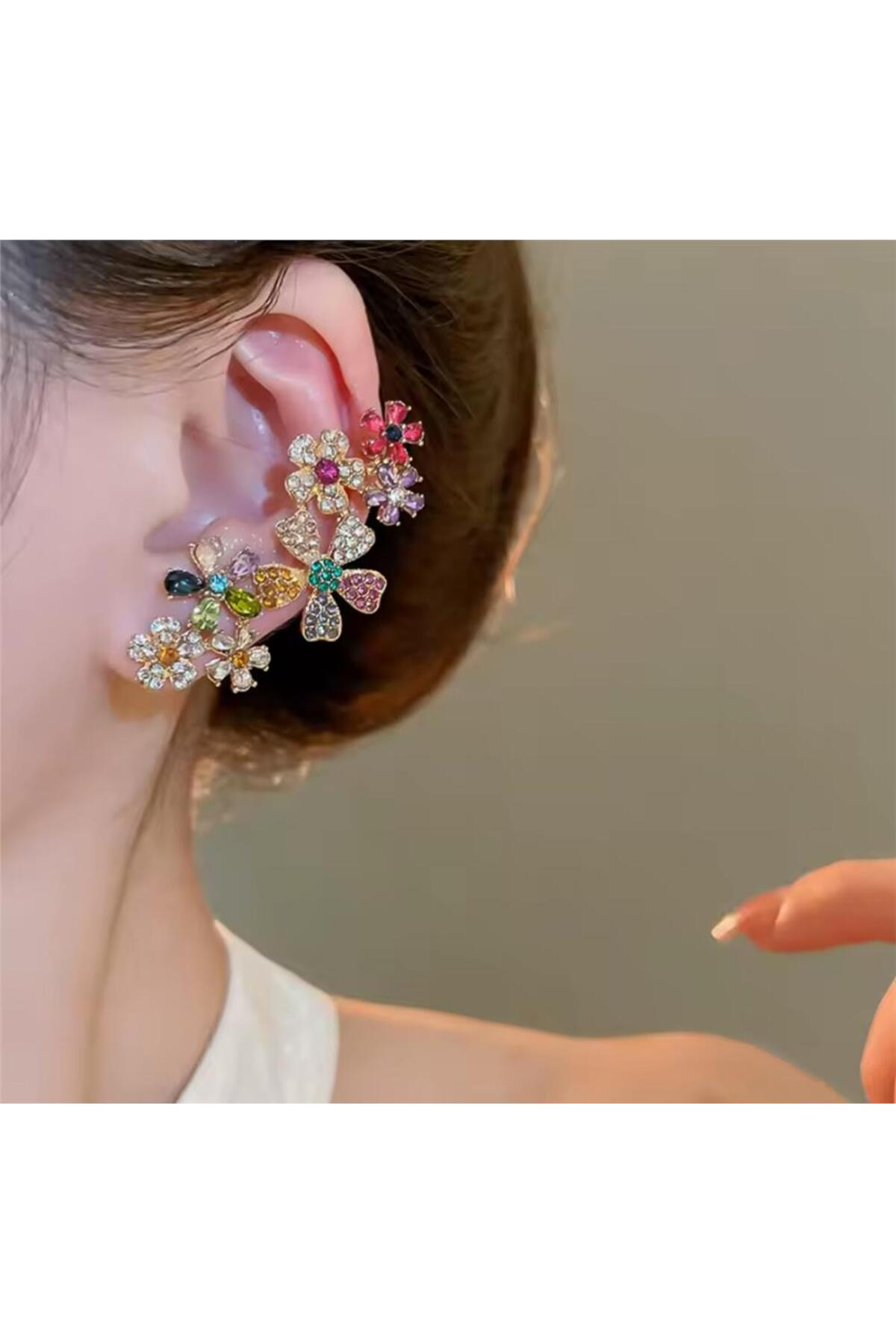 Pelin Aksesuar Renkli Kristal Çiçekli Küpe Kulak Aksesuarı