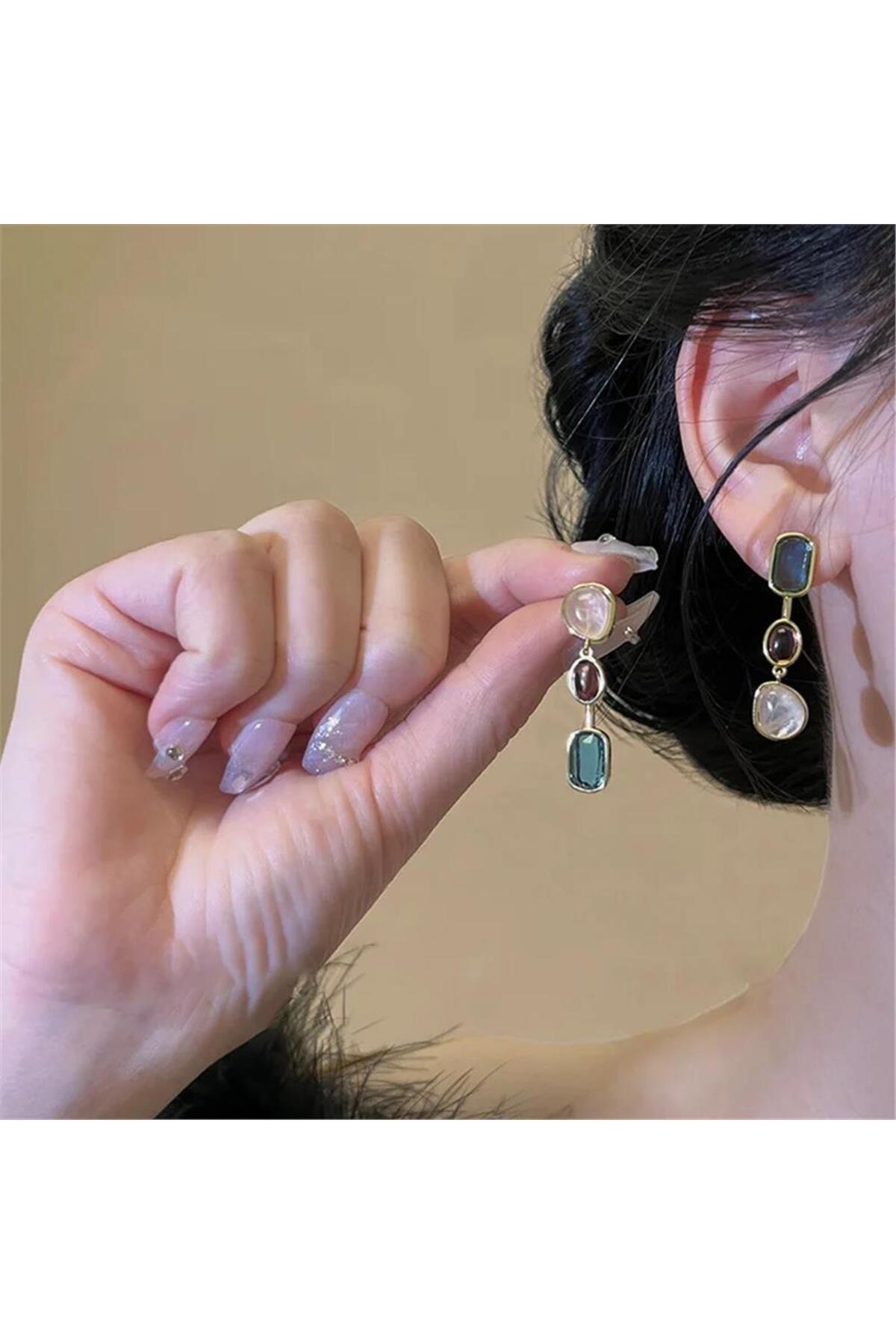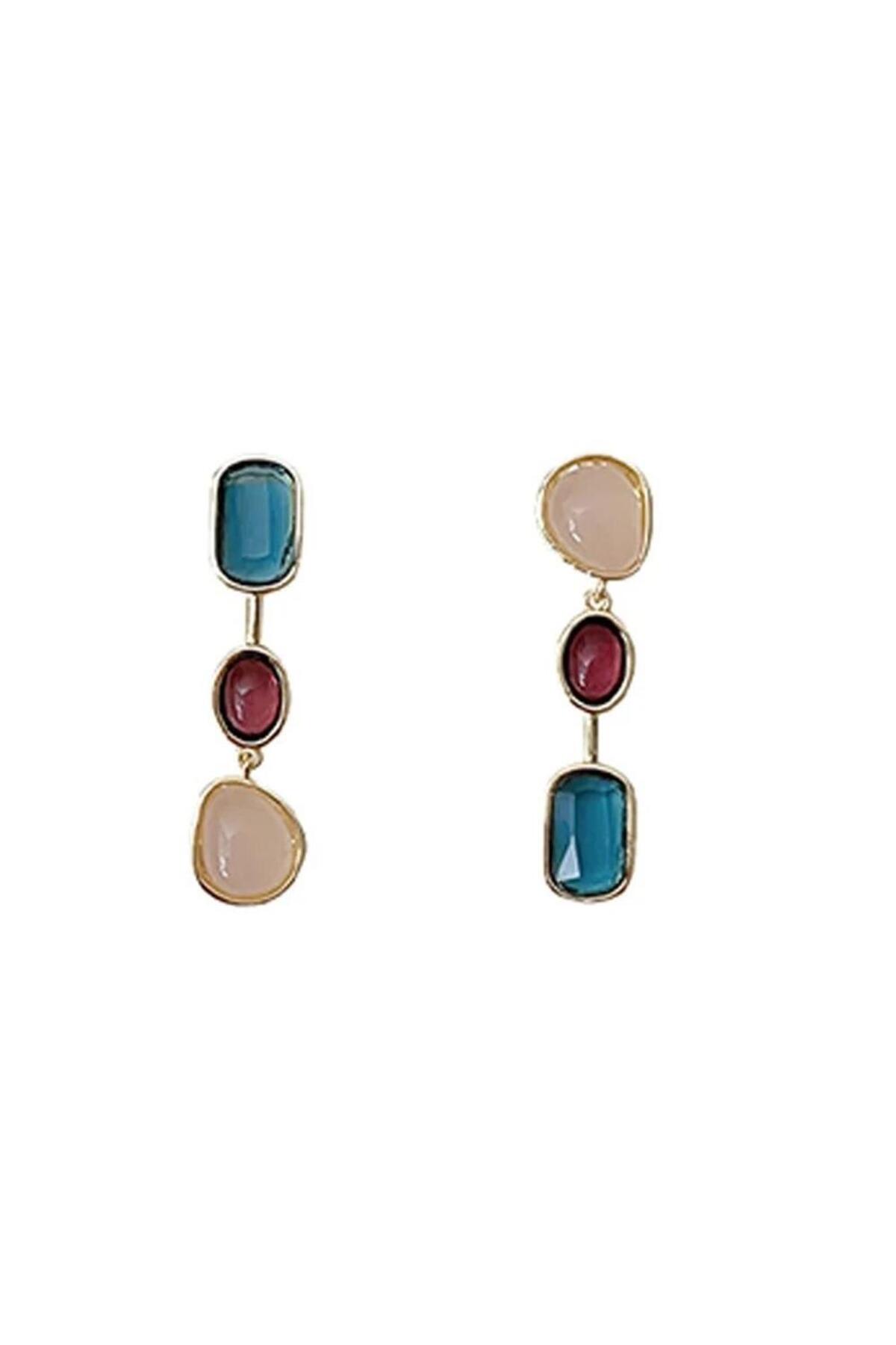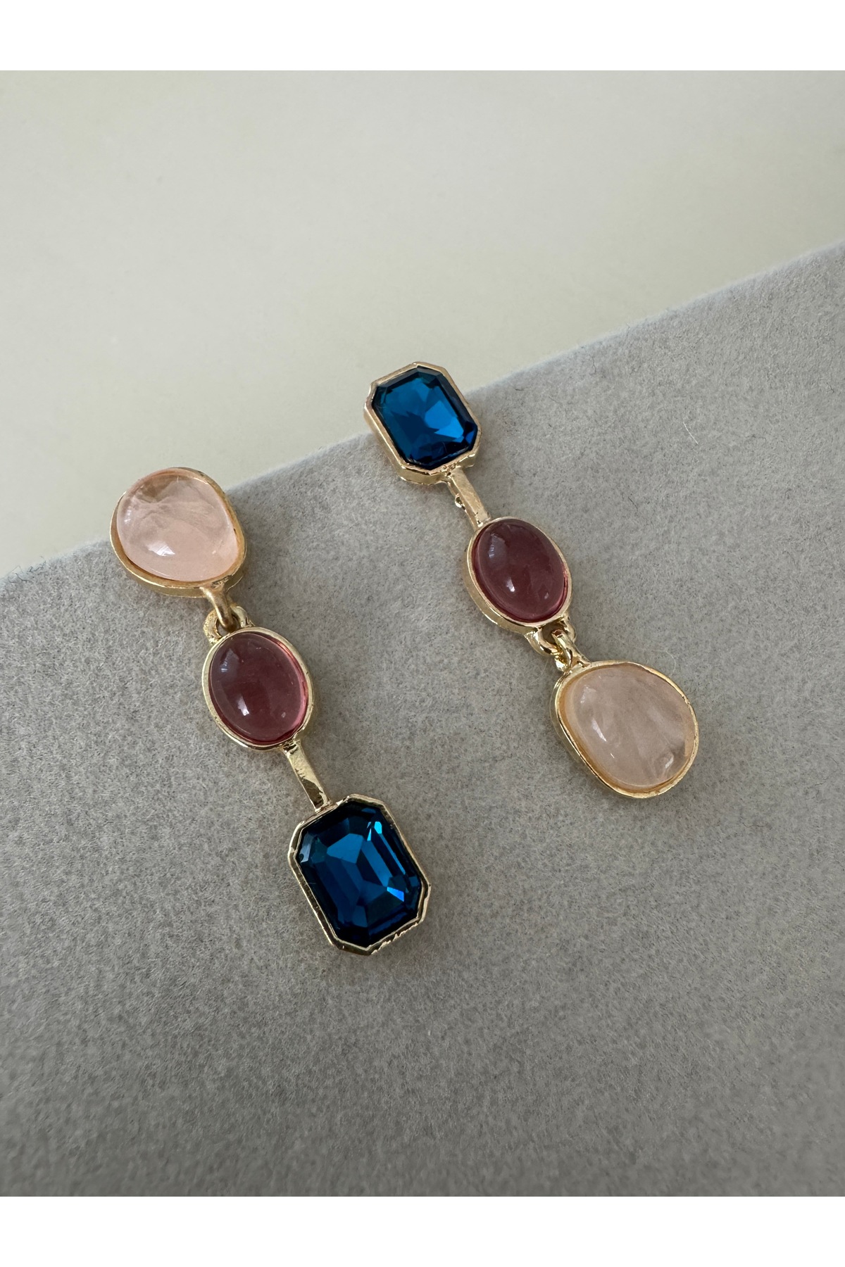Pelin Aksesuar Renkli Taşlı Asimetrik Küpe