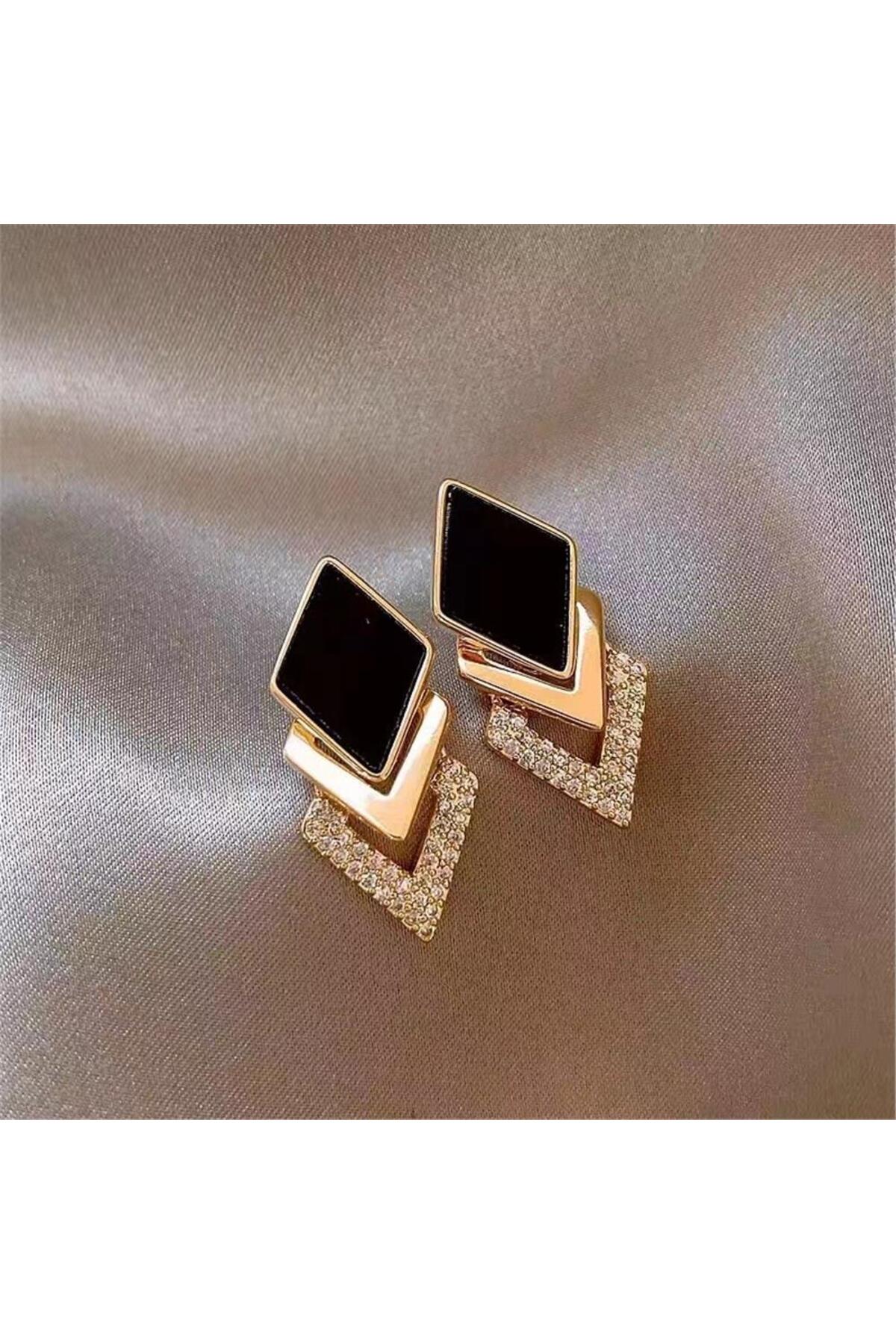 Pelin Aksesuar Siyah Gold Dörtgen Küpe