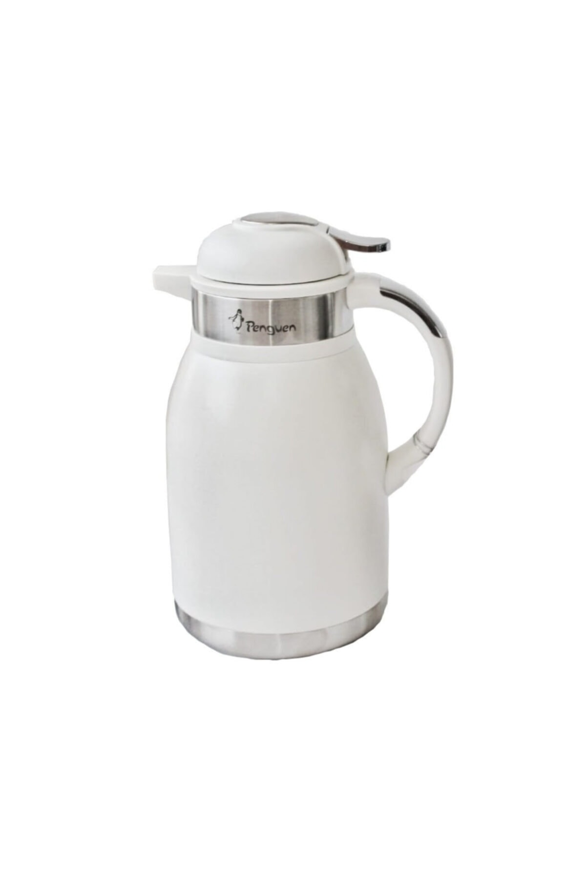 Penguen New Titanium Beyaz 2 Litre Çift Katlı Çelik Termos Mandallı Png-1093