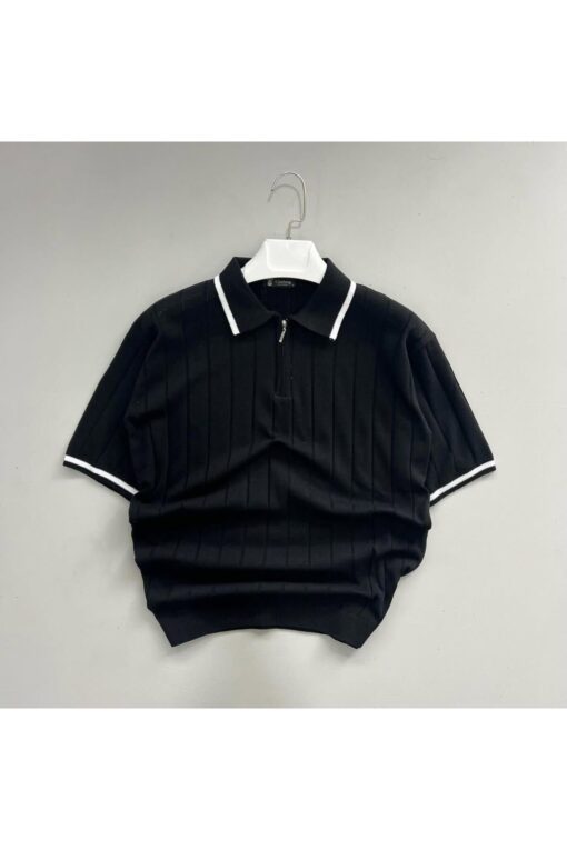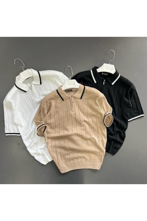 Ana Sayfa » kozmetikara.com » Giyim » Üst Giyim » T-Shirt » pepule siyah beyaz kahve 3 lü yaka detaylı Örme Triko Tshirt
