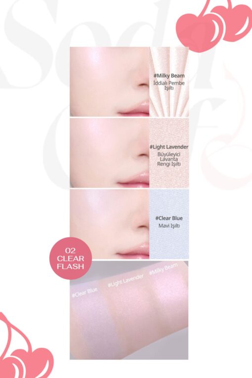 PERIPERA İnci Işıltıları İçeren Aydınlatıcı Paleti PERIPERA V Highlighter Ad (002 Clear Flash)