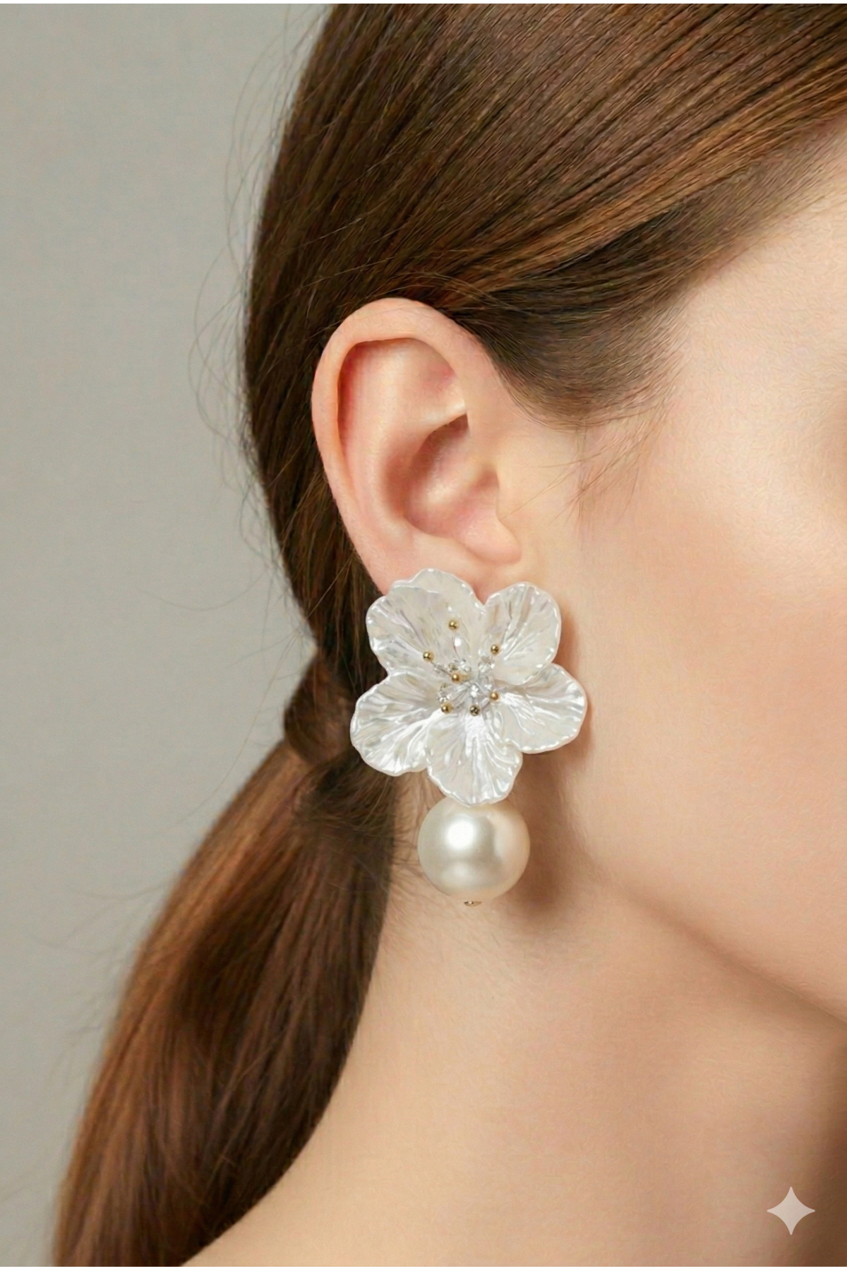 PETEK AKSESUAR Çiçek Incili Tasarım Küpe