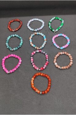 Lio20 Unisex Porselen Kaplama Doğal Taş 10’Lu Bileklik-Sevgili Arkadaş Aile Kombin Hediye Aksesuar
