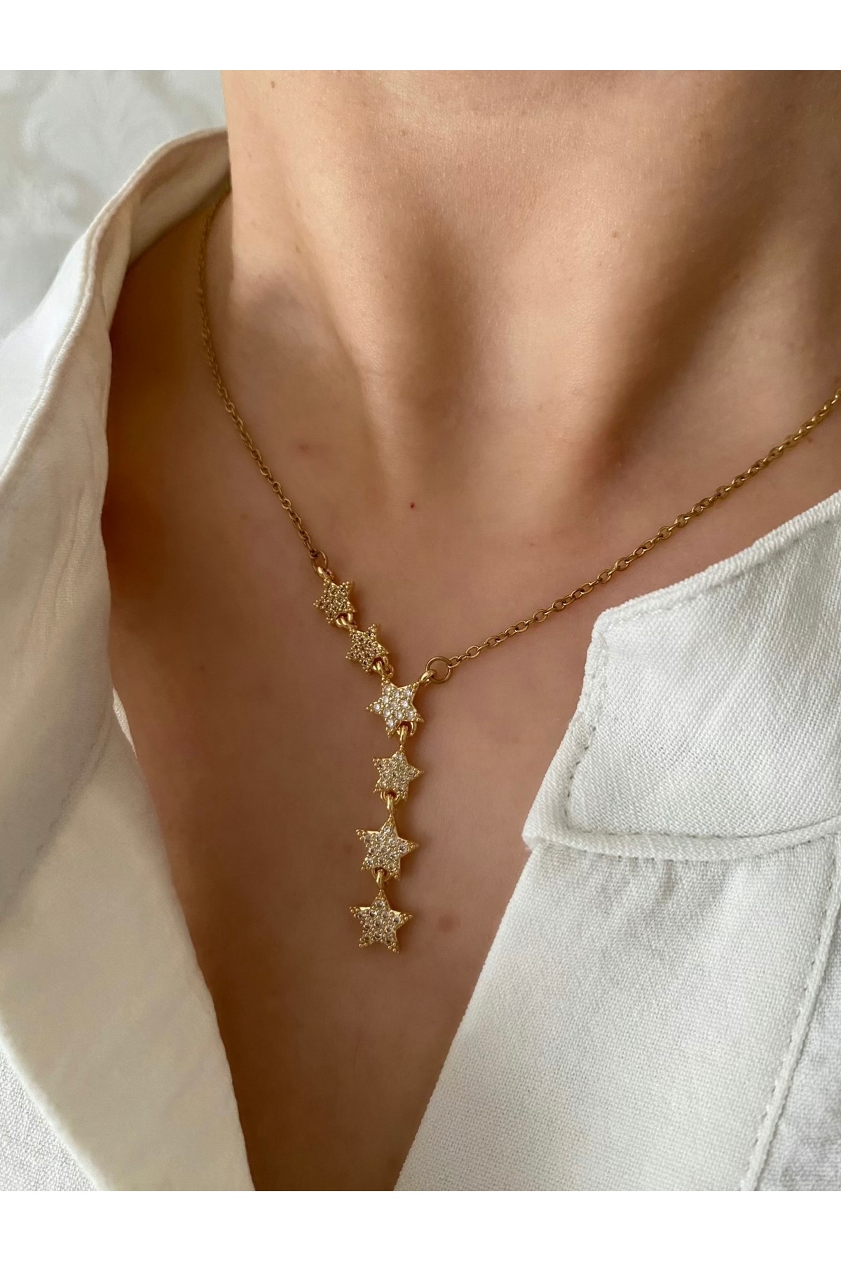 Petek Collection Çelik yıldızlar dekolte Y kolye (gold)