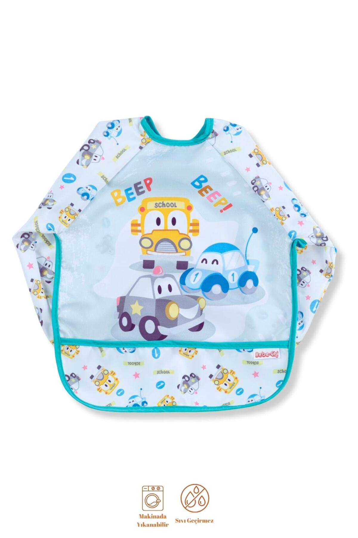 Pico Baby Bebek Araba Desenli Su Geçirmez Uzun Kollu Mama Ve Etkinlik Önlüğü