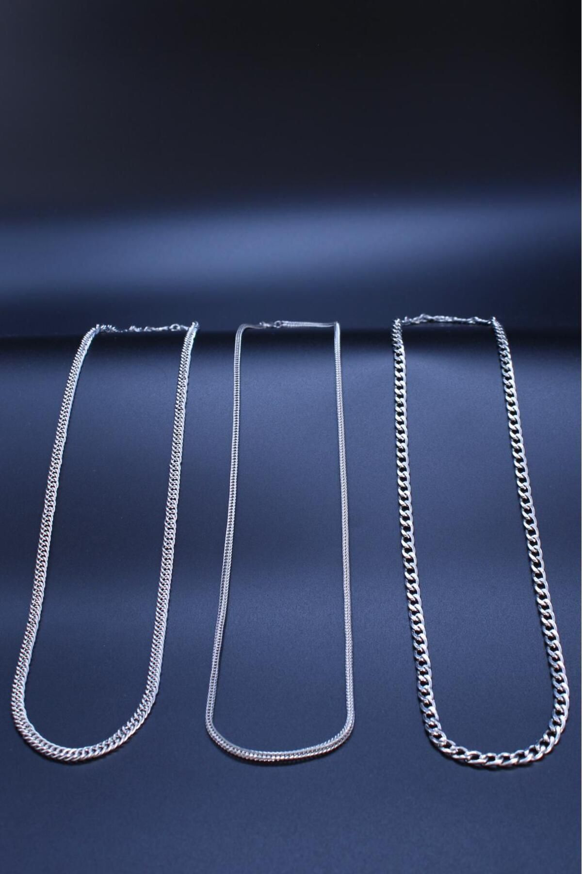 Piercing Market Steel & Silver 3’lü Burgu Örgü Ve Tilki Kuyruğu Zincir Kolye Seti