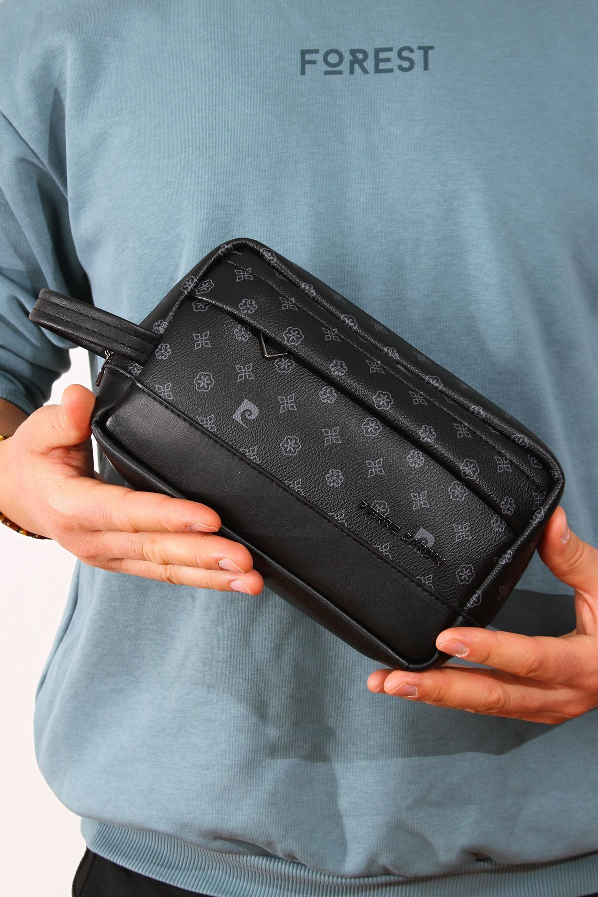 Pierre Cardin 01pc002000 Erkek El Çantası El Pörtföyü Clutch Çanta Baskılı Siyah