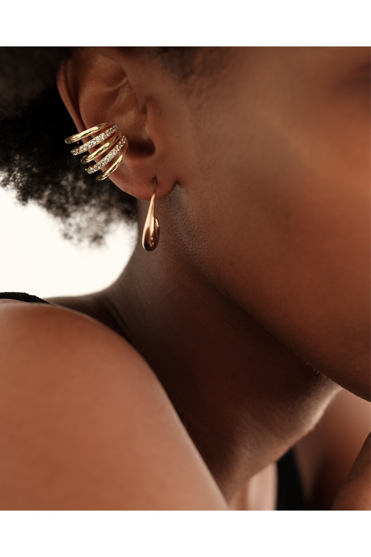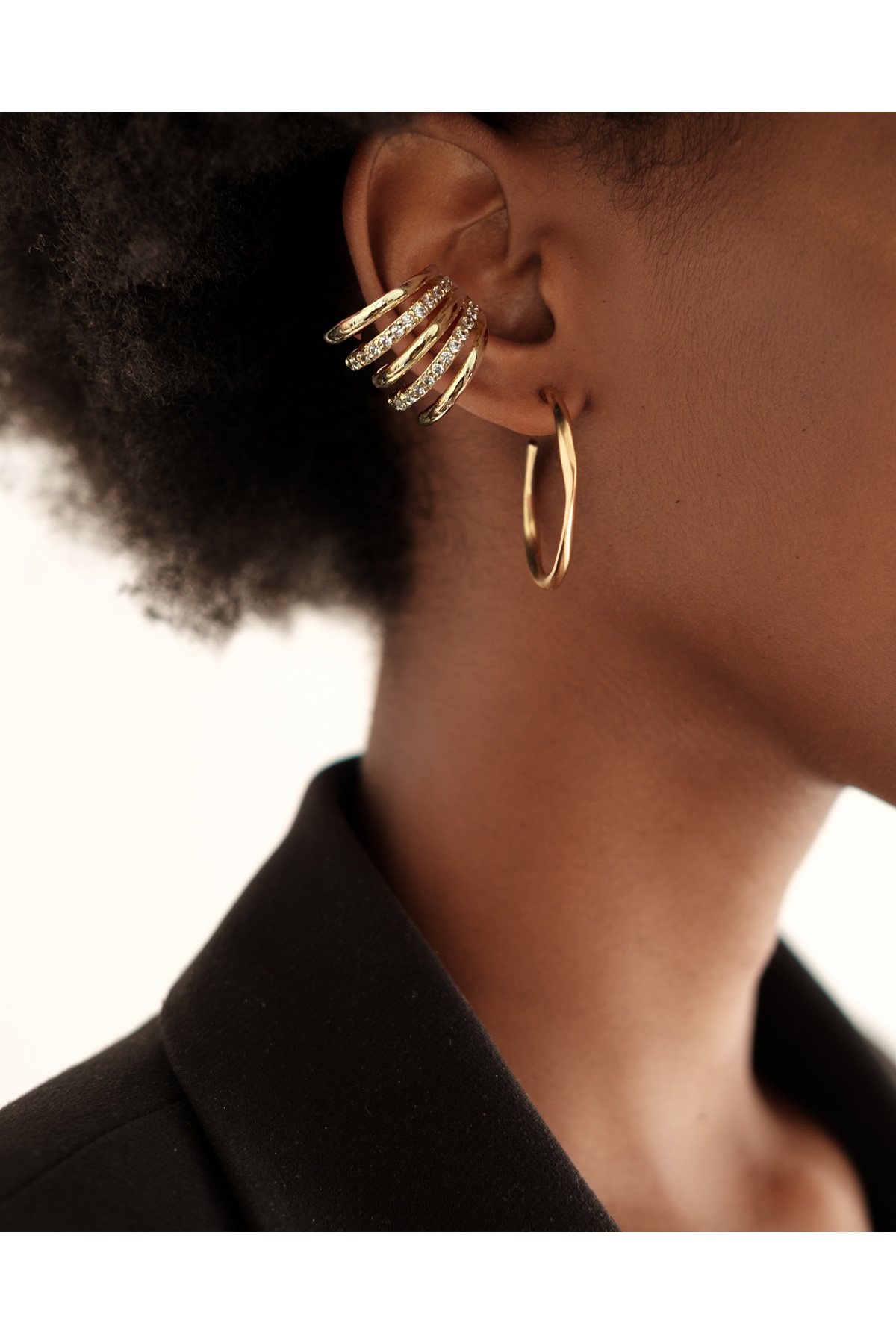 Pinery Jewels Kadın Büyük Earcuff Taşlı 5 Sıra Kıkırdak Küpe