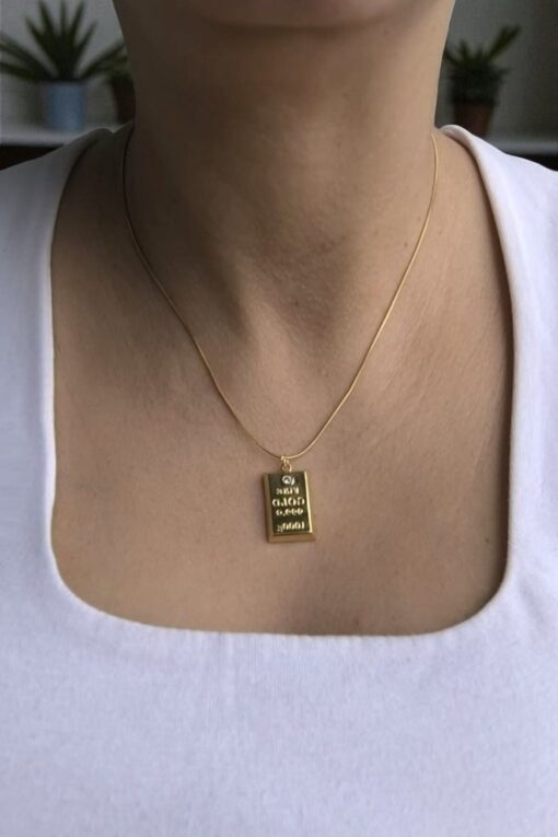 Pointmod Goldy Altın Kaplama Kararmaz 2 cm Külçe Altın Desenli Kolye