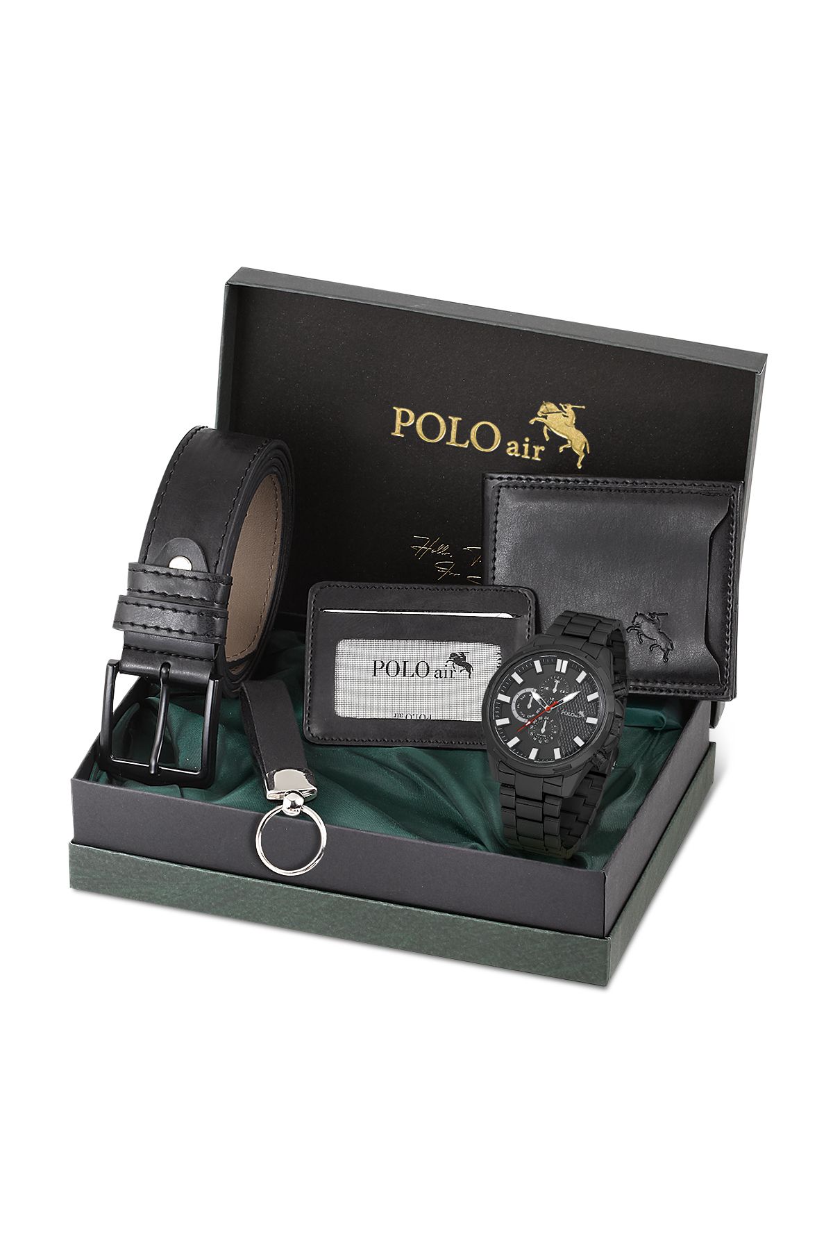 polo air Erkek Set Kombin Kol Saati Ve Cüzdan Kemer Kartlık Çakmak Anahtarlık Siyah Pl-0792e1