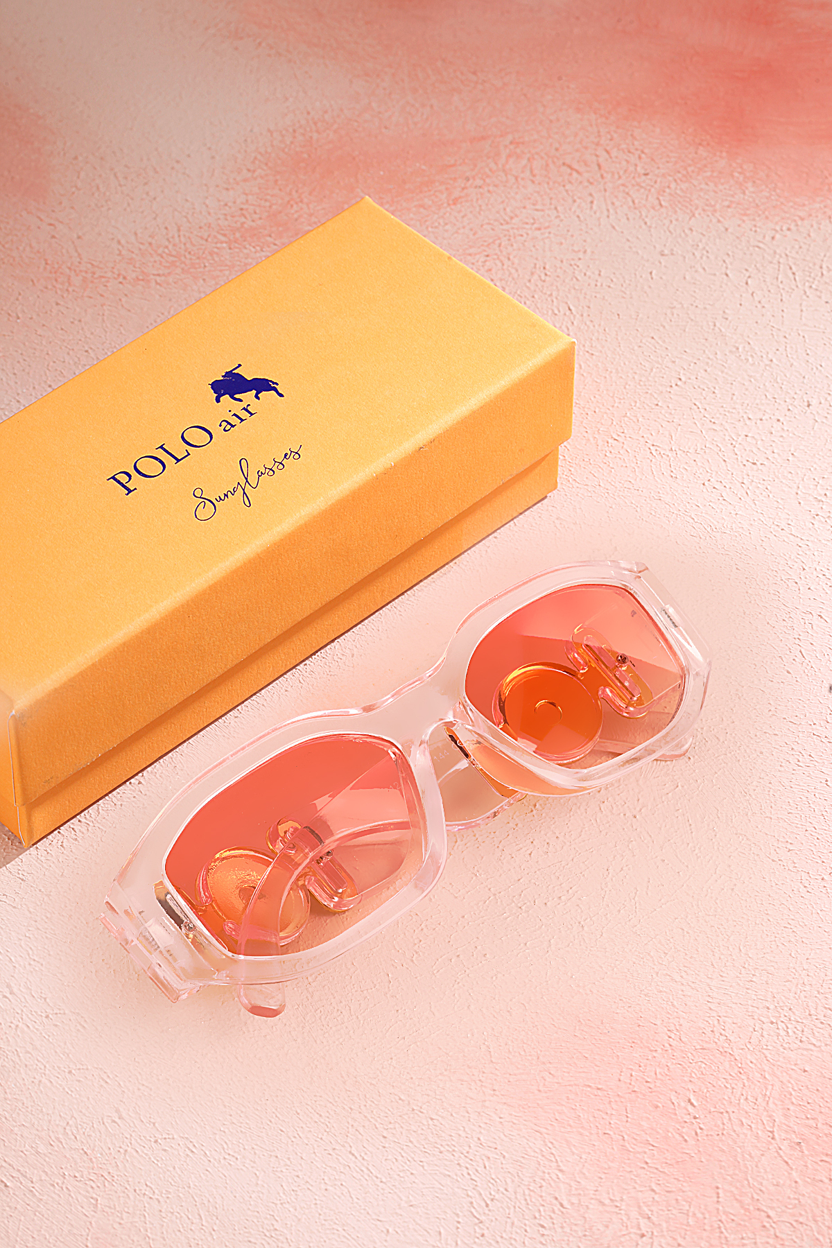 Polo Air Uv400 Korumalı Sarı Detaylı Kadın Dikdörtgen Güneş Gözlüğü Şeffaf Pembe PLG-2084C5