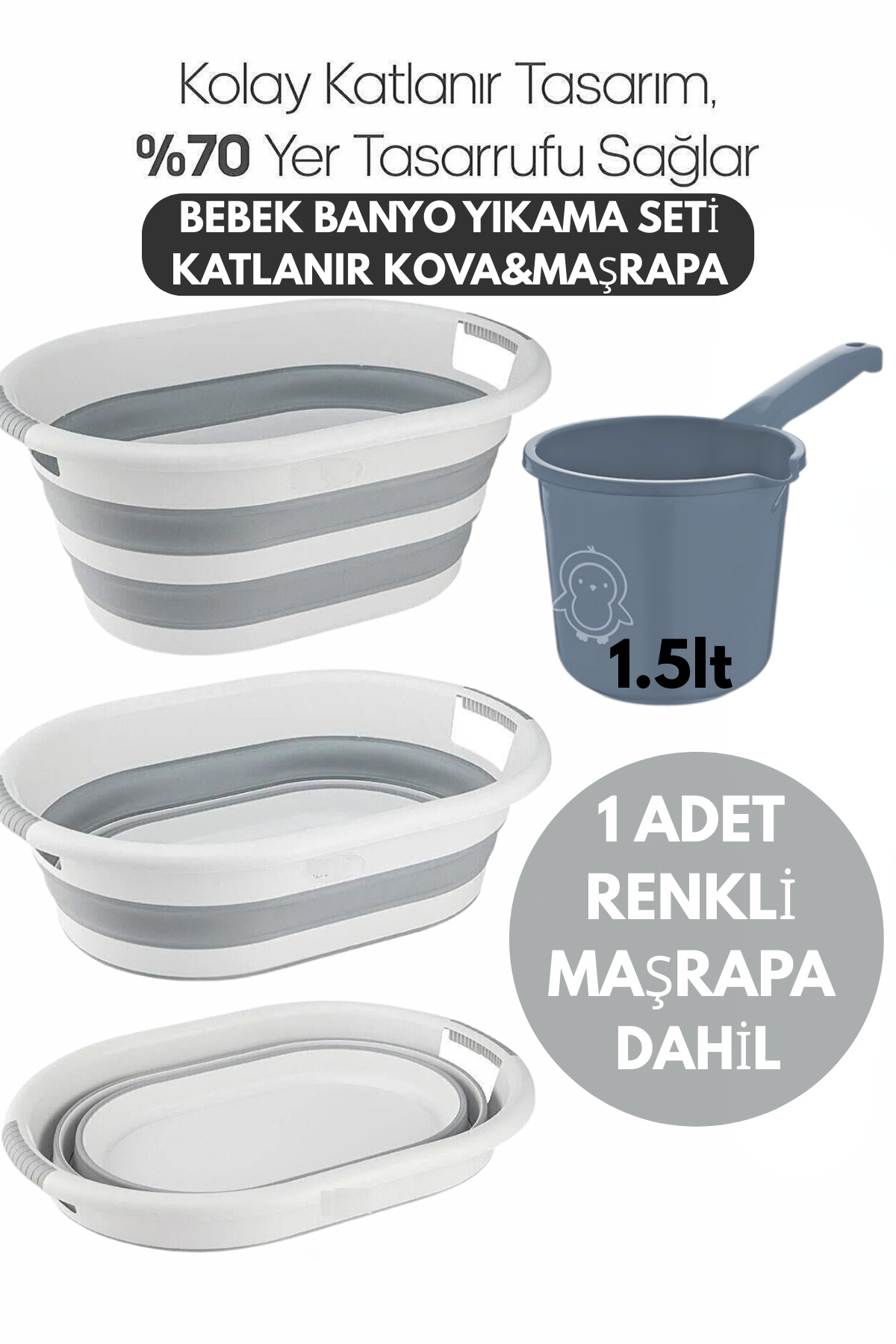 PONÇİK STORE Banyo Su Kovası Katlanabilir Beyaz-Gri- Maşrapa Renkli -2'li Bebek Banyo Seti Katlanır Kova ürünü ucuz fiyat, hızlı kargo imkanı ile hemen sitemizden sipariş verin.