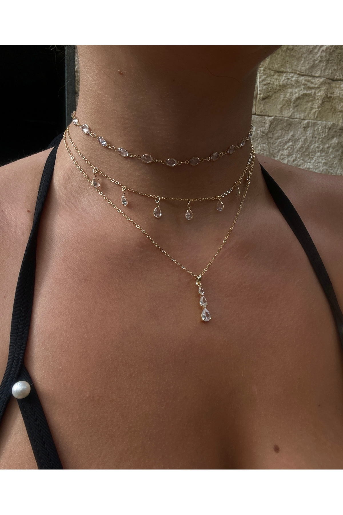pop up store Damla Taşlı Üçlü Set Zirkon Kolye