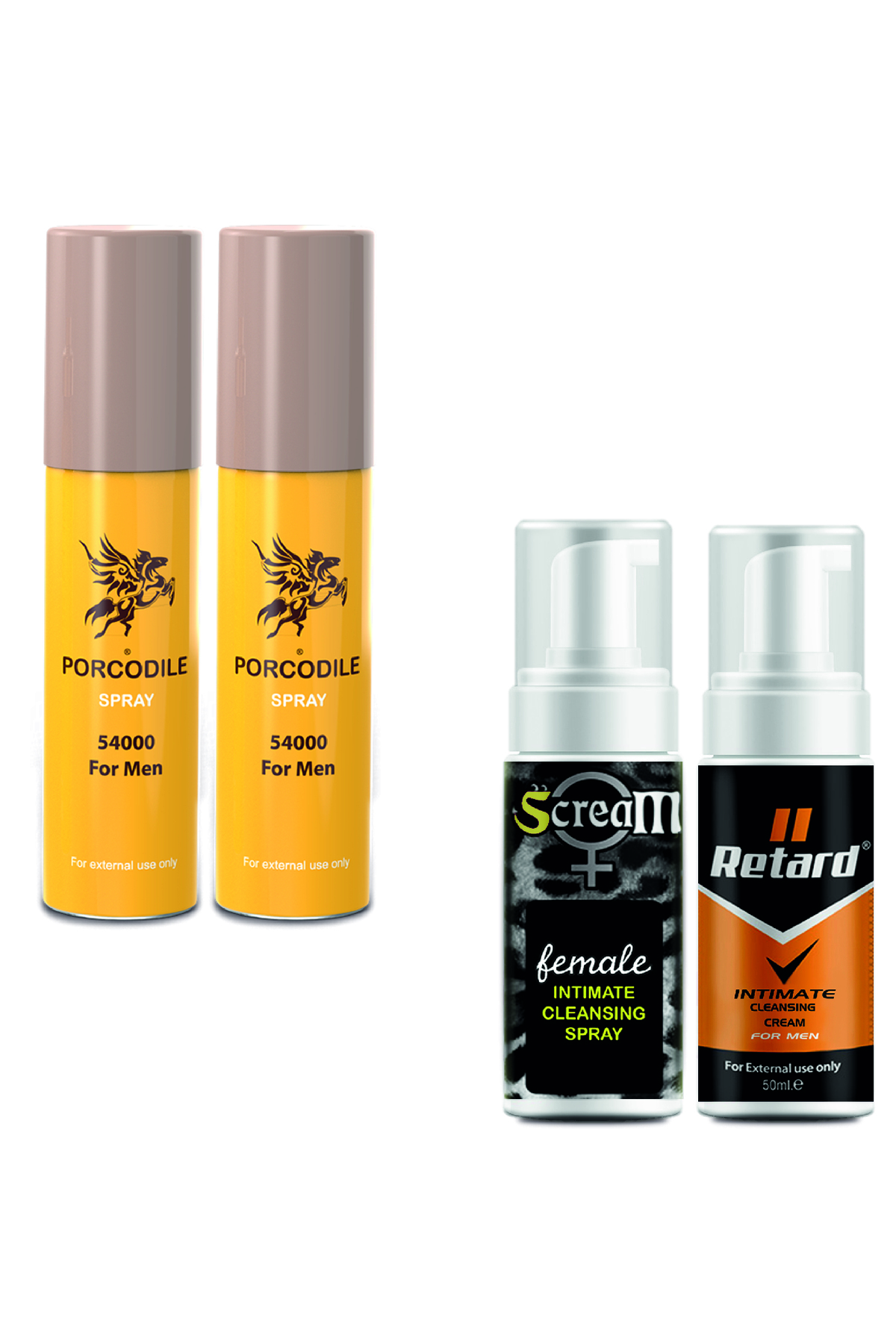 Porcodile 2 Adet Sprey - Retard For Men Krem Ve Scream Female Sprey ürünü ucuz fiyat, hızlı kargo imkanı ile hemen sitemizden sipariş verin.