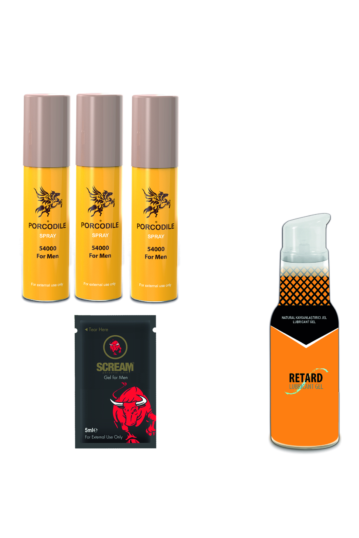 Porcodile 3 Adet Sprey - Scream Tekli Jel Ve Retard Glide Kayganlaştırıcı Jel ürünü ucuz fiyat, hızlı kargo imkanı ile hemen sitemizden sipariş verin.