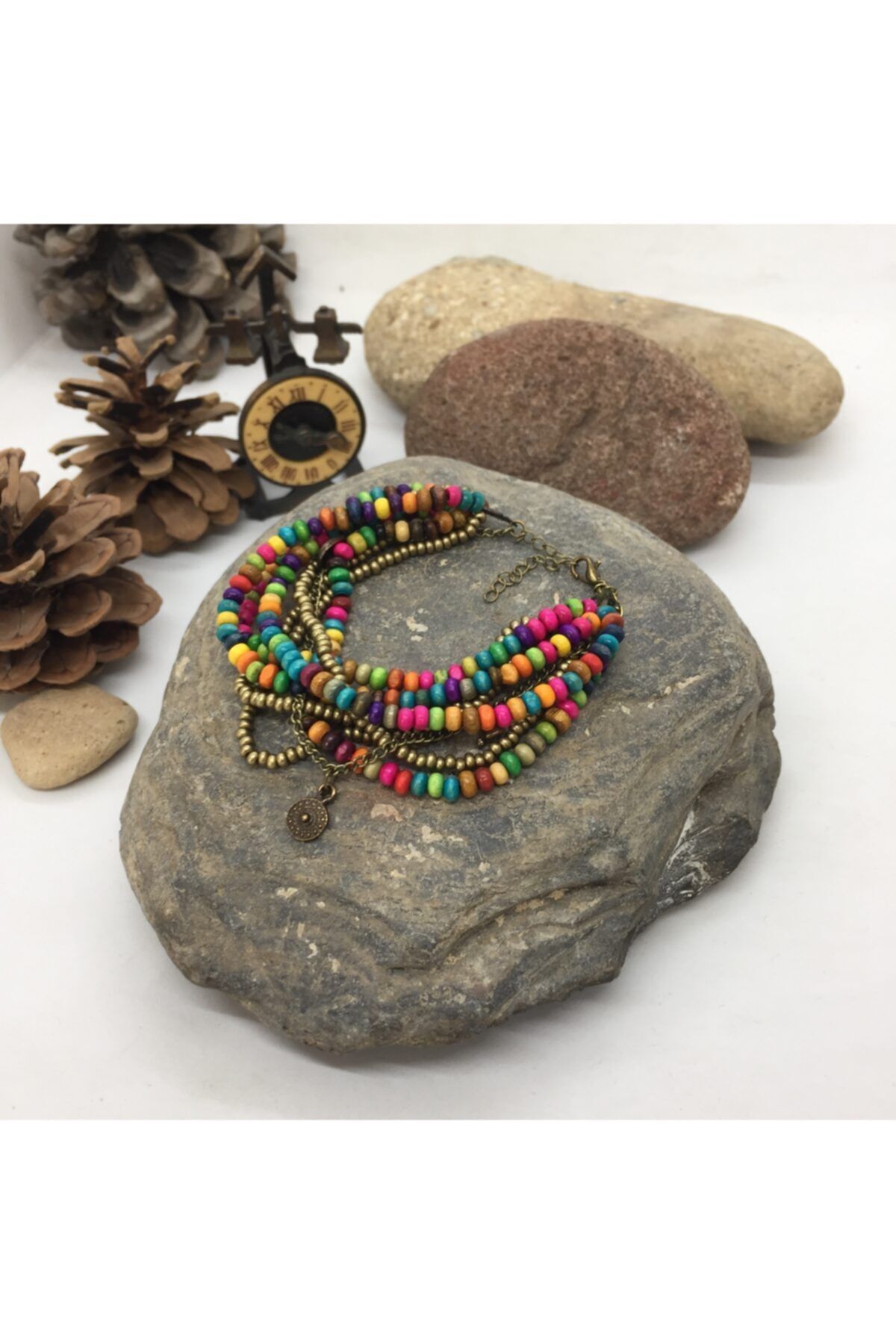 Porsuk Alternatif El Yapımı Etnik Otantik Hippi Bohem Ahşap Boncuk Çoklu Bileklik