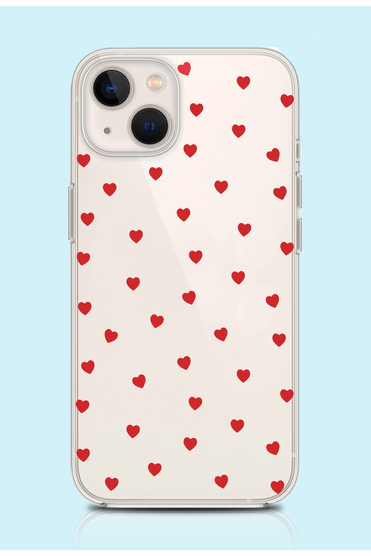 Minik kalplerin yer aldığı şeffaf kılıf, telefonunuza sevimli bir dokunuş ekler ve kişisel tarzınızı yansıtır