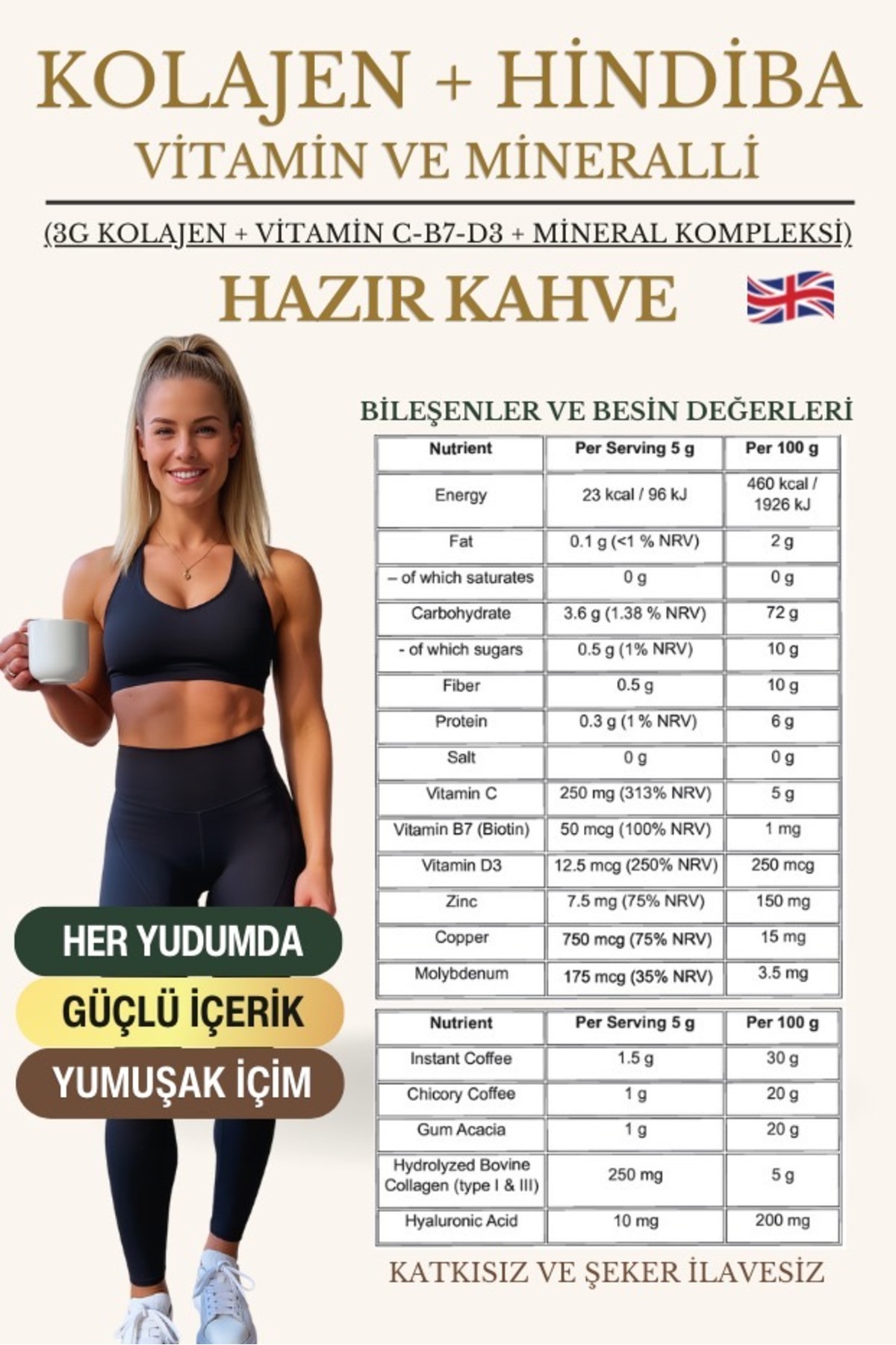 Prebico Prebiyotik, Kolajen, Multivitamin, Multimineral ve Hindiba İçeren Hazır Detoks Kahvesi