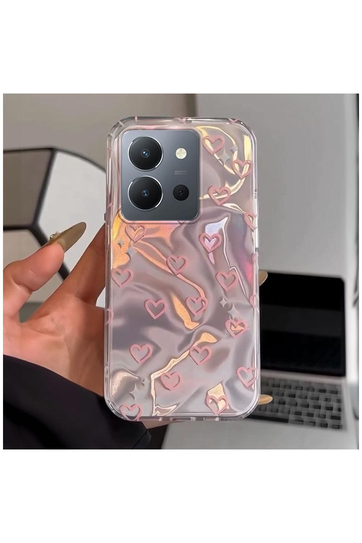 Pro Aksesuar Vivo Y36 Uyumlu Kılıf Kalp Desenli Silikon Kılıf Pembe