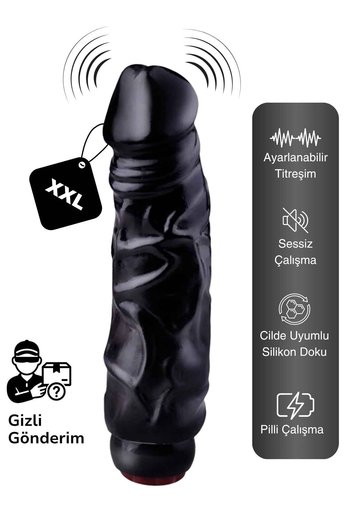 PSD Kozmetik Gerçekçi Dokulu 24 cm XXL Siyah Vibratör – Ayarlanabilir Hızlı, Sessiz Çalışma