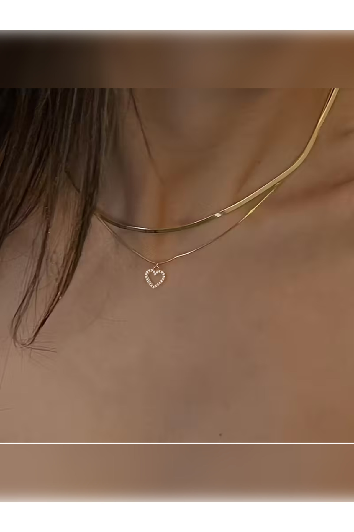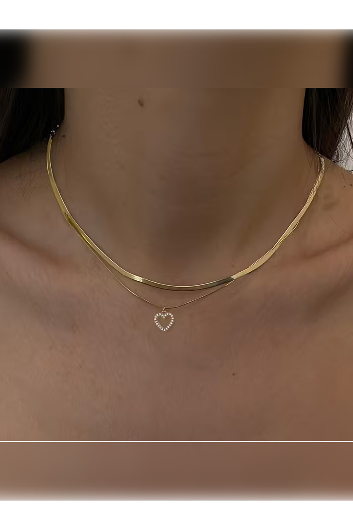 PURE BERRY ZARİF İNCE ZİRKON KALPLİ 2 Lİ SET ÇELİK KOLYE