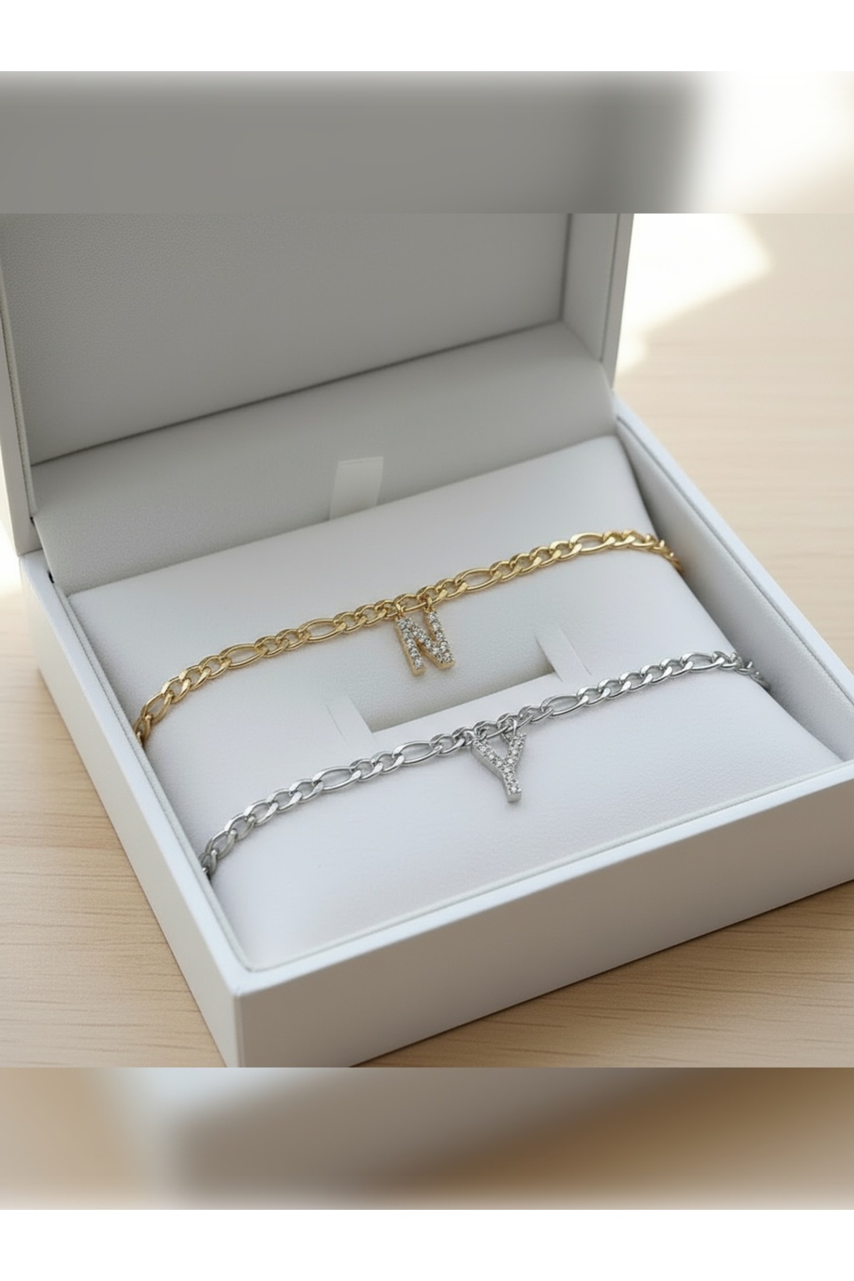 PURE BERRY ZİRKON TAŞLI BAŞ HARFLİ ÇİFT SEVGİLİ ARKADAŞ DOSTLUK BİLEKLİĞİ %100 ÇELİK(HARF BELİRT) 2 ADET