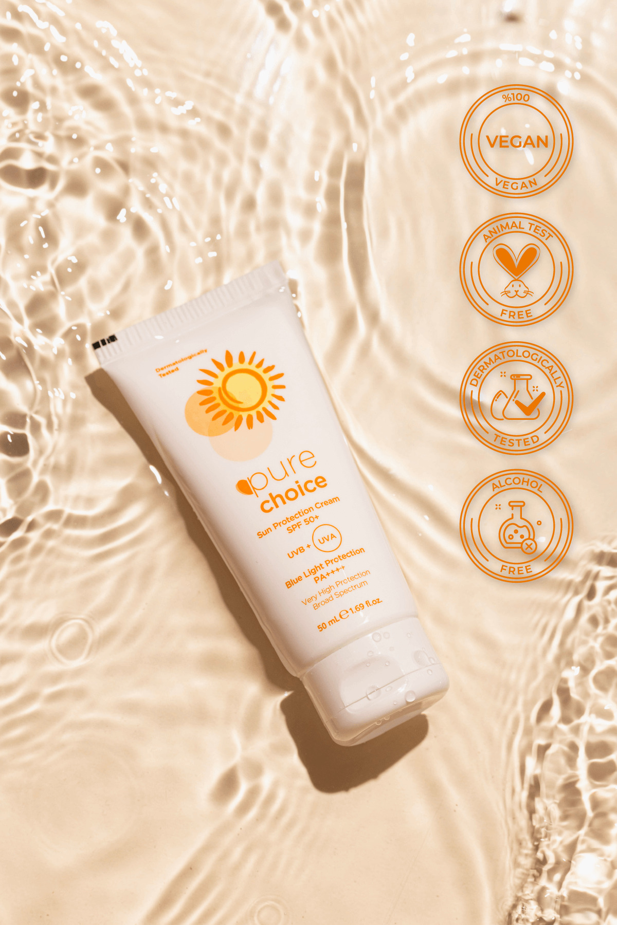 Pure Choice SPF 50+ Güneş Koruyucu Krem, 50ml – Suya Dayanıklı Çok Yüksek Koruma