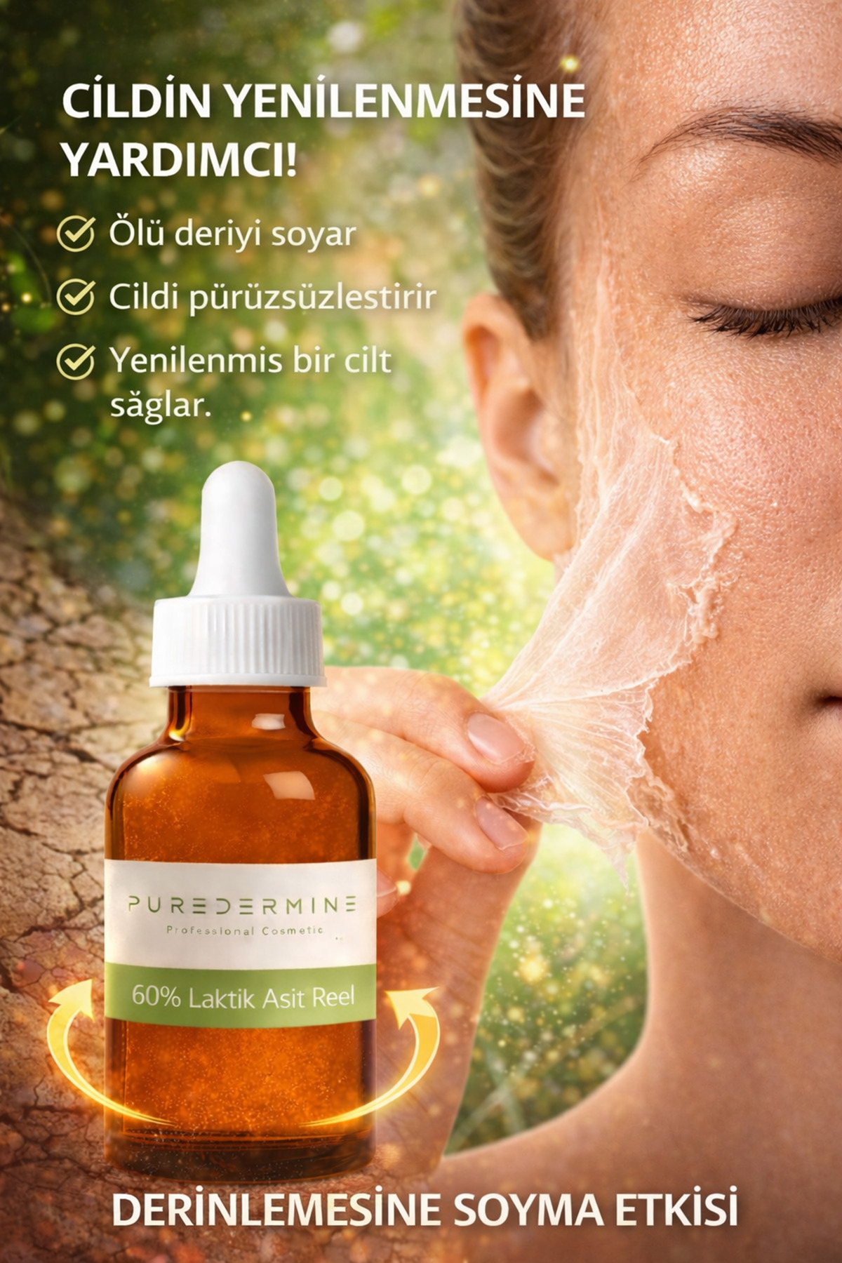 Puredermine %60 Laktik Asit Kimyasal Peeling – Cilt Soyucu, Yenileyici, Parlak & Pürüzsüz Cilt Bakımı
