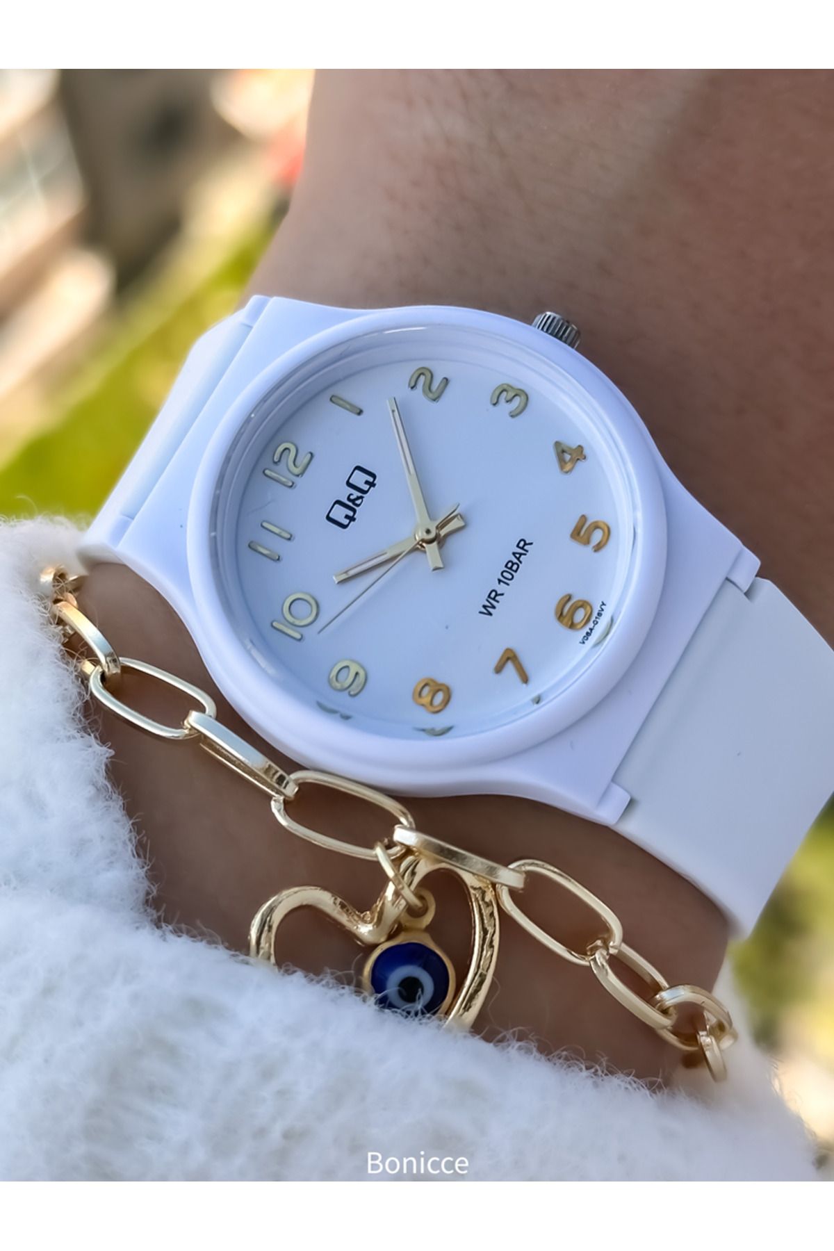 Q&Q Beyaz Silikon Kordon, 10 Bar Su Geçirmez (havuz, Deniz Kullanımına Uygun) Kız Çocuk Kol Saati
