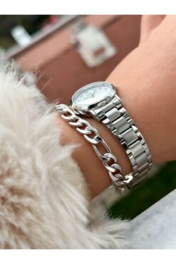 Q&Q Marka Çelik Kordon, Su Geçirmez, 2 Yıl Garantili Gümüş Renk Küçük Kasa Kadın Kol Saati+bileklik