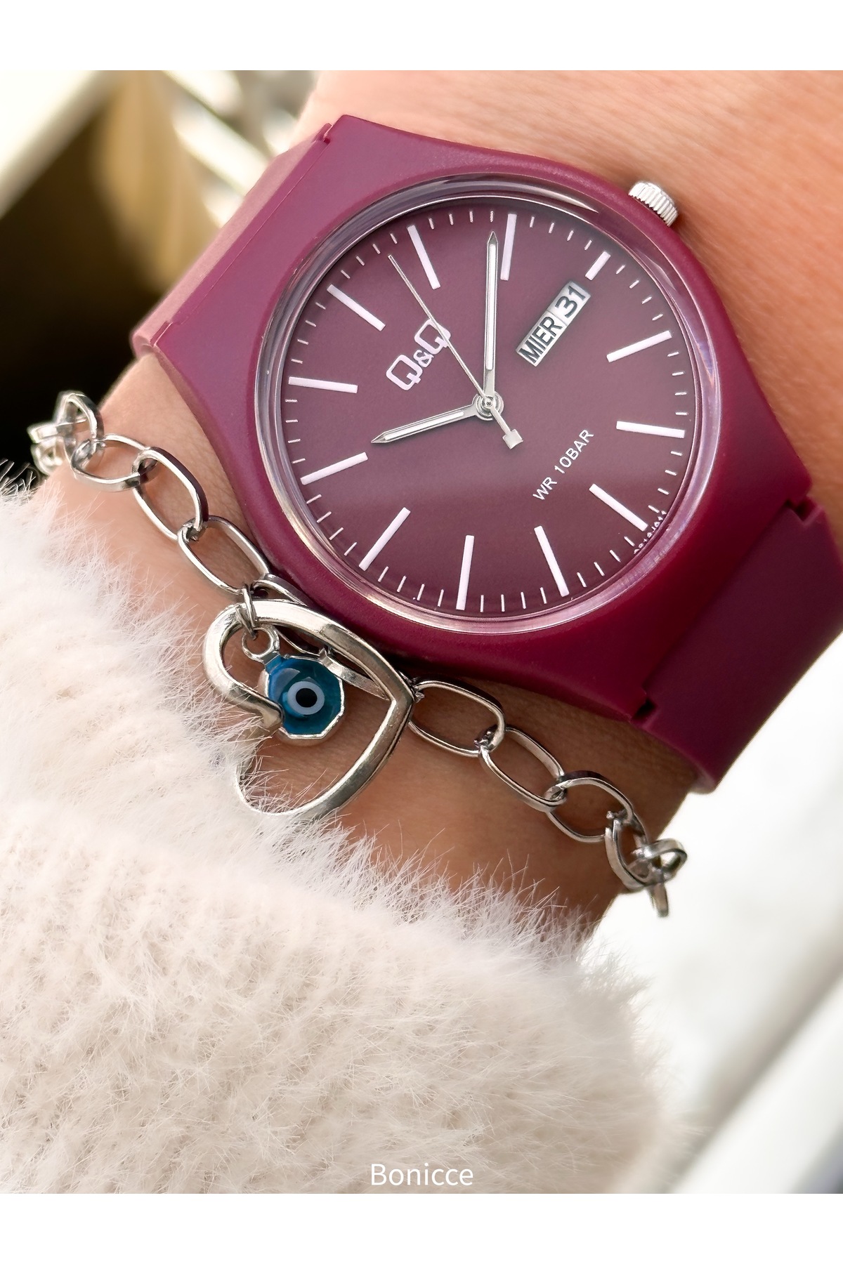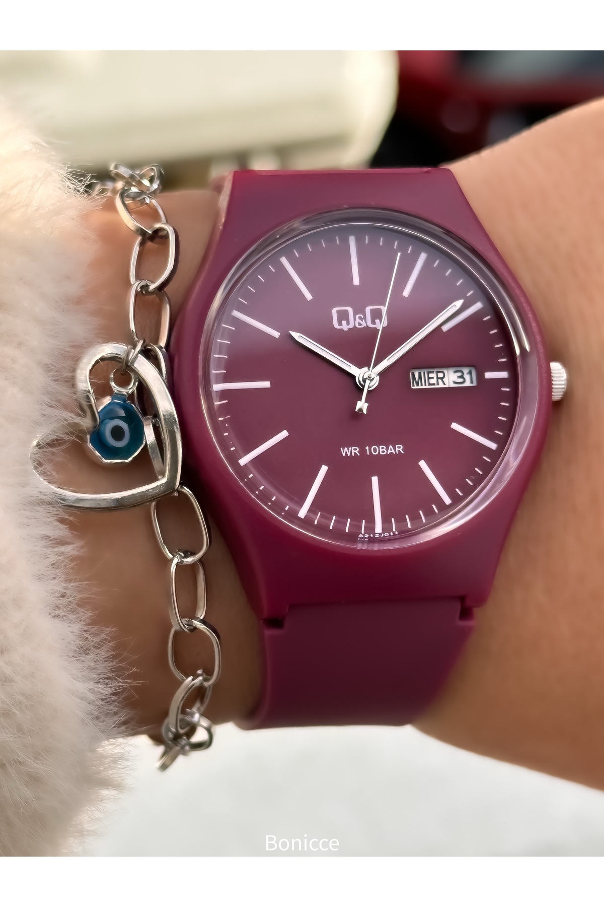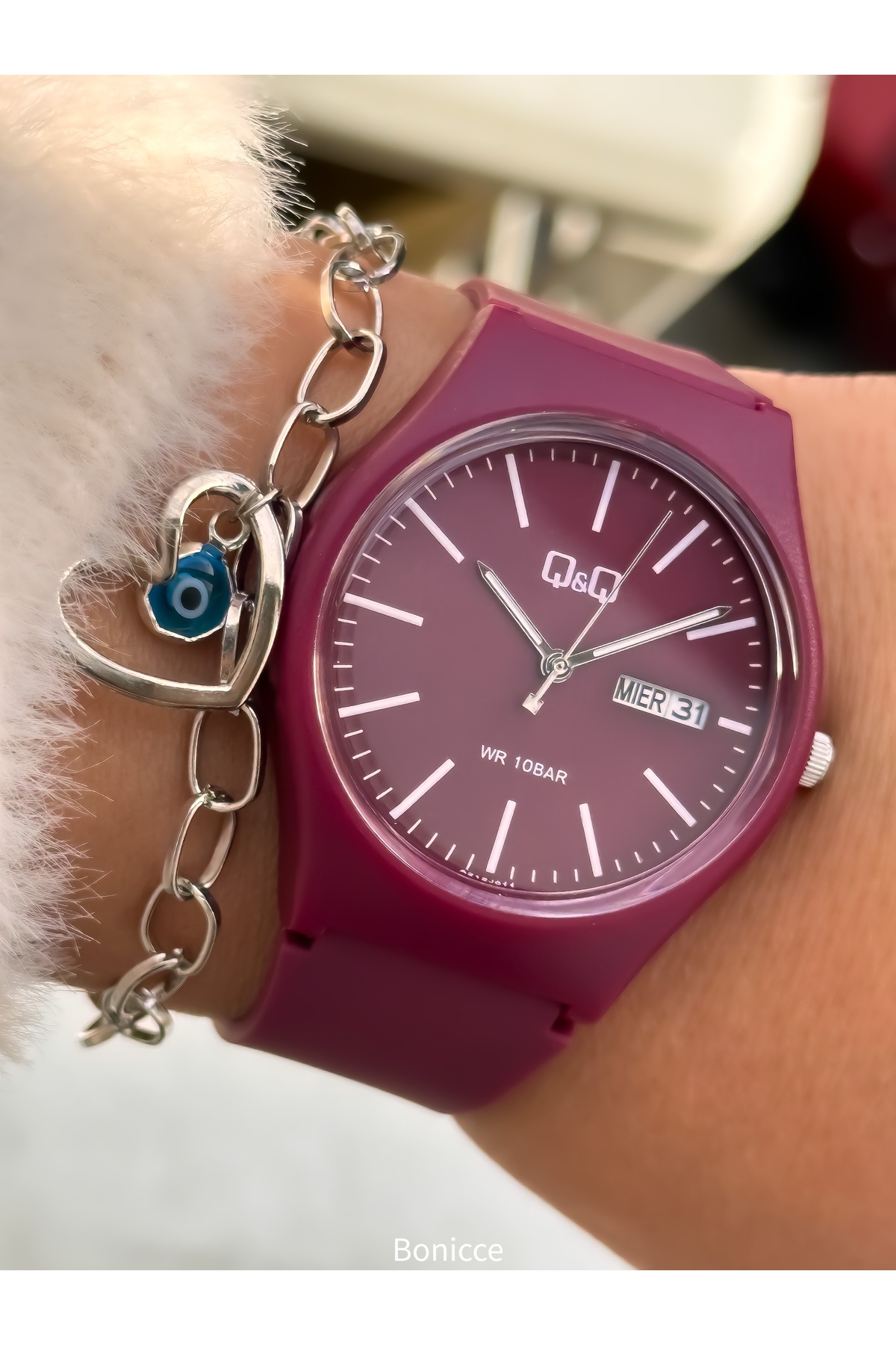 Q&Q Marka Mor Renk ,silikon Kordon, Takvimli, Bay/bayan Spor Kol Saati