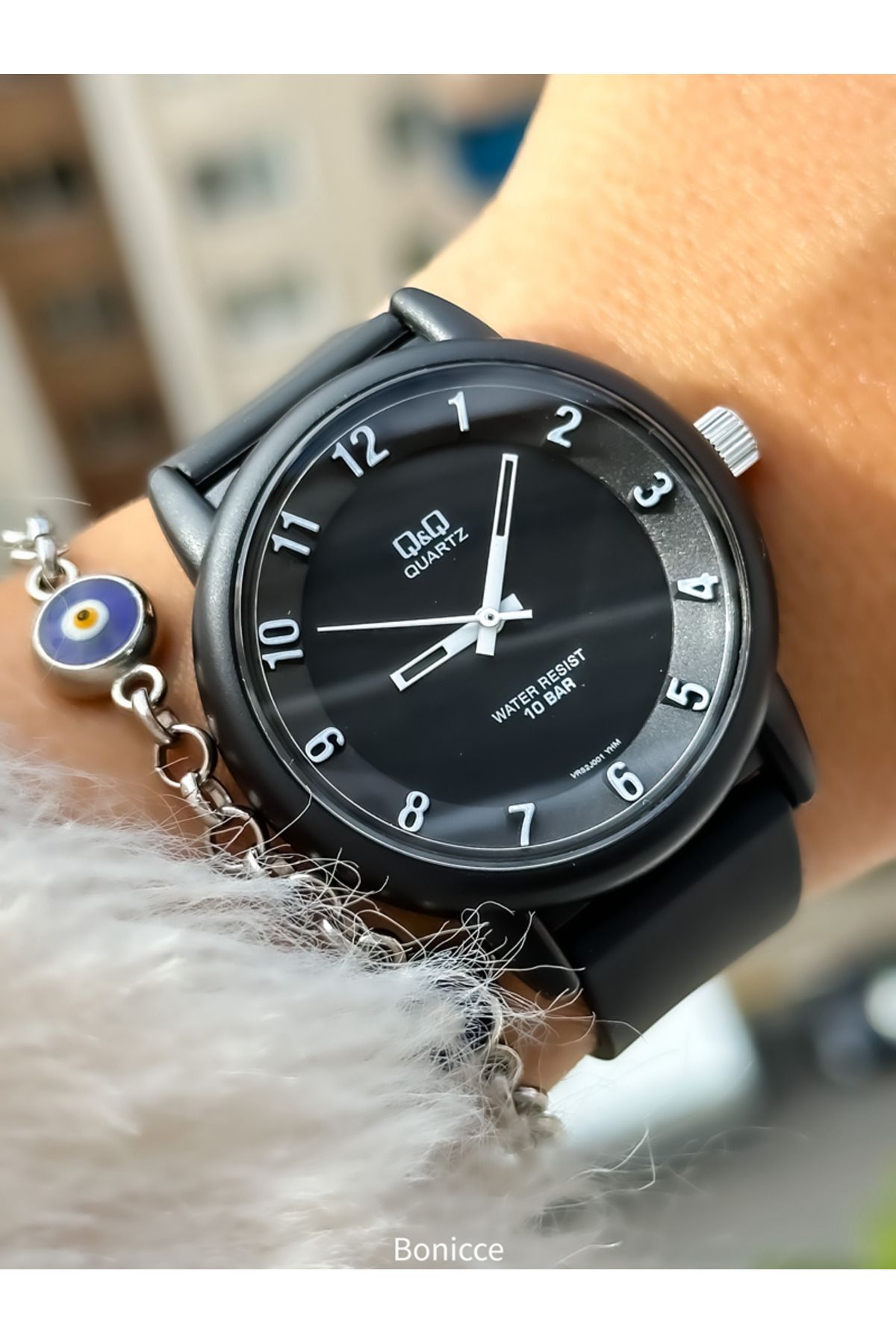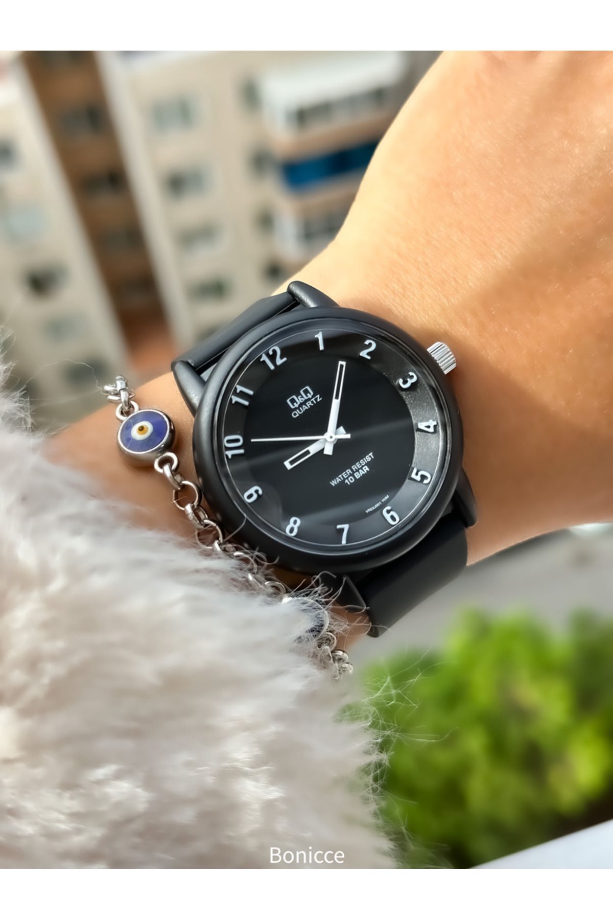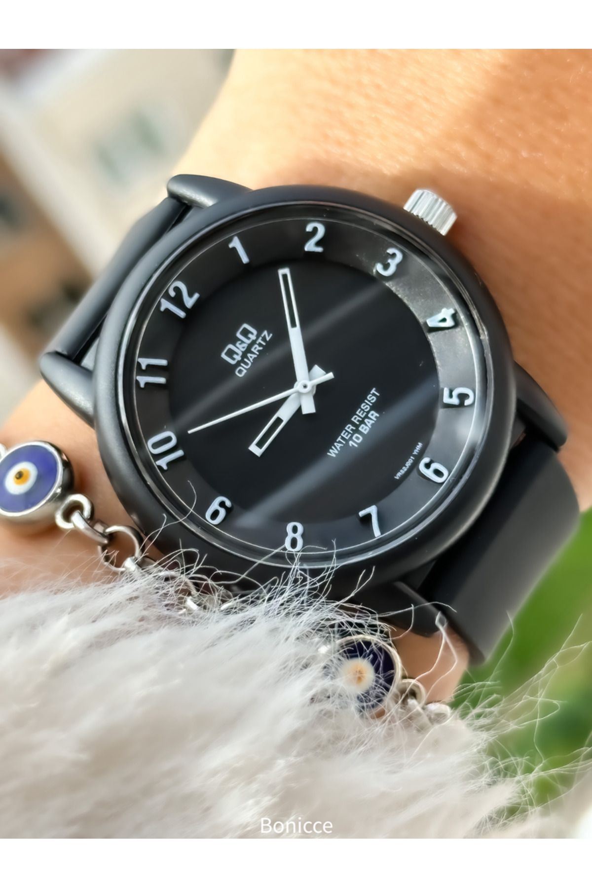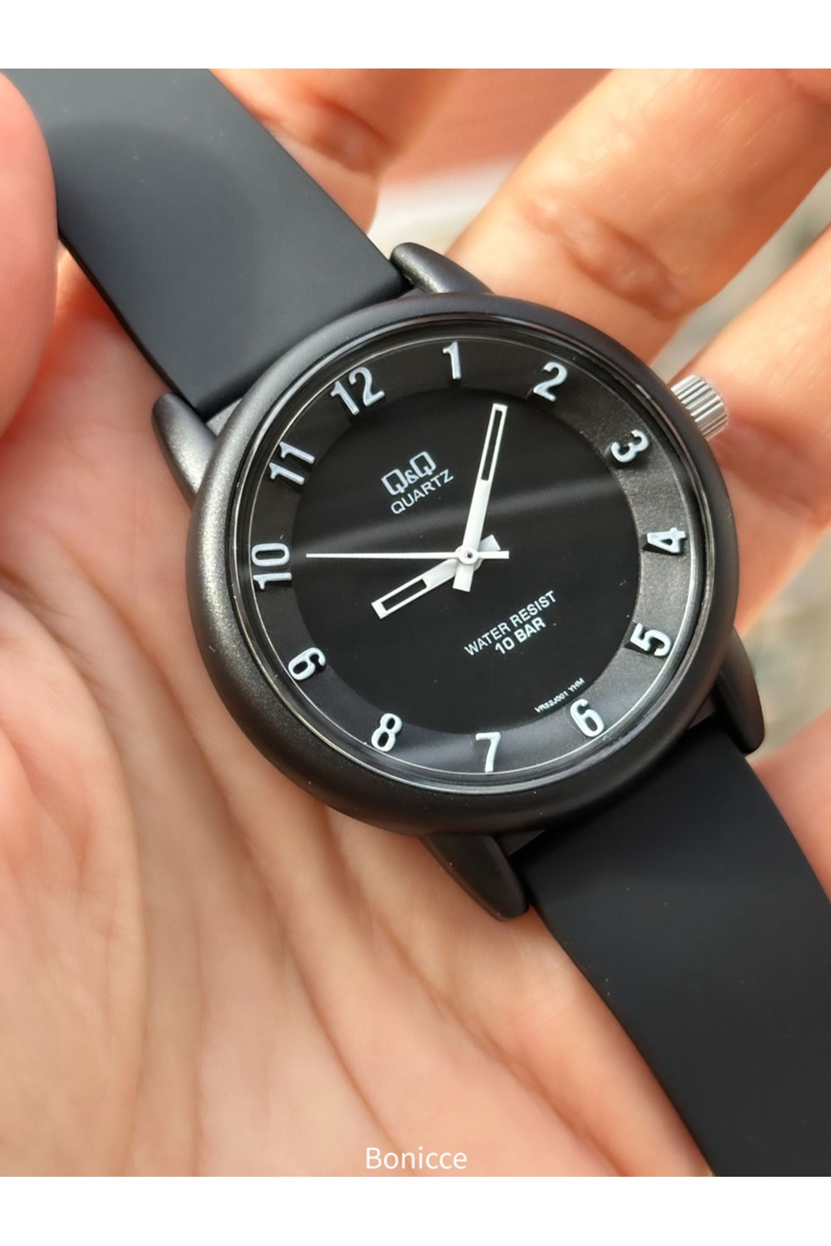 Q&Q Marka Siyah Renk ,Silikon Kordon,(Havuz,Deniz Kullanımına Uygun)Bay/Bayan Spor KolSaati