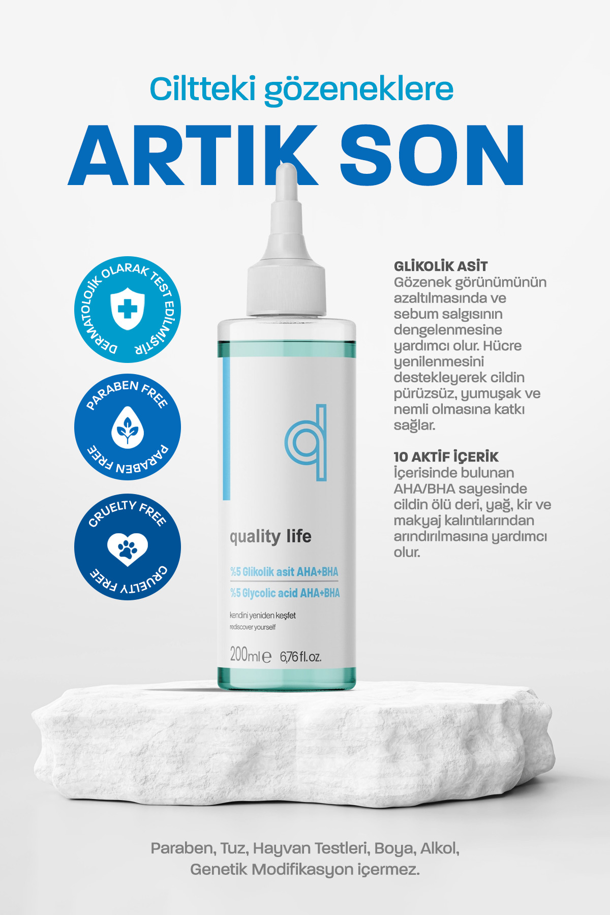 Quality Life Glikolik Asit Tonik – AHA BHA – Gözenek Sıkılaştırıcı Ölü Deri Temizleyici Arındırıcı Yüz Temizleme