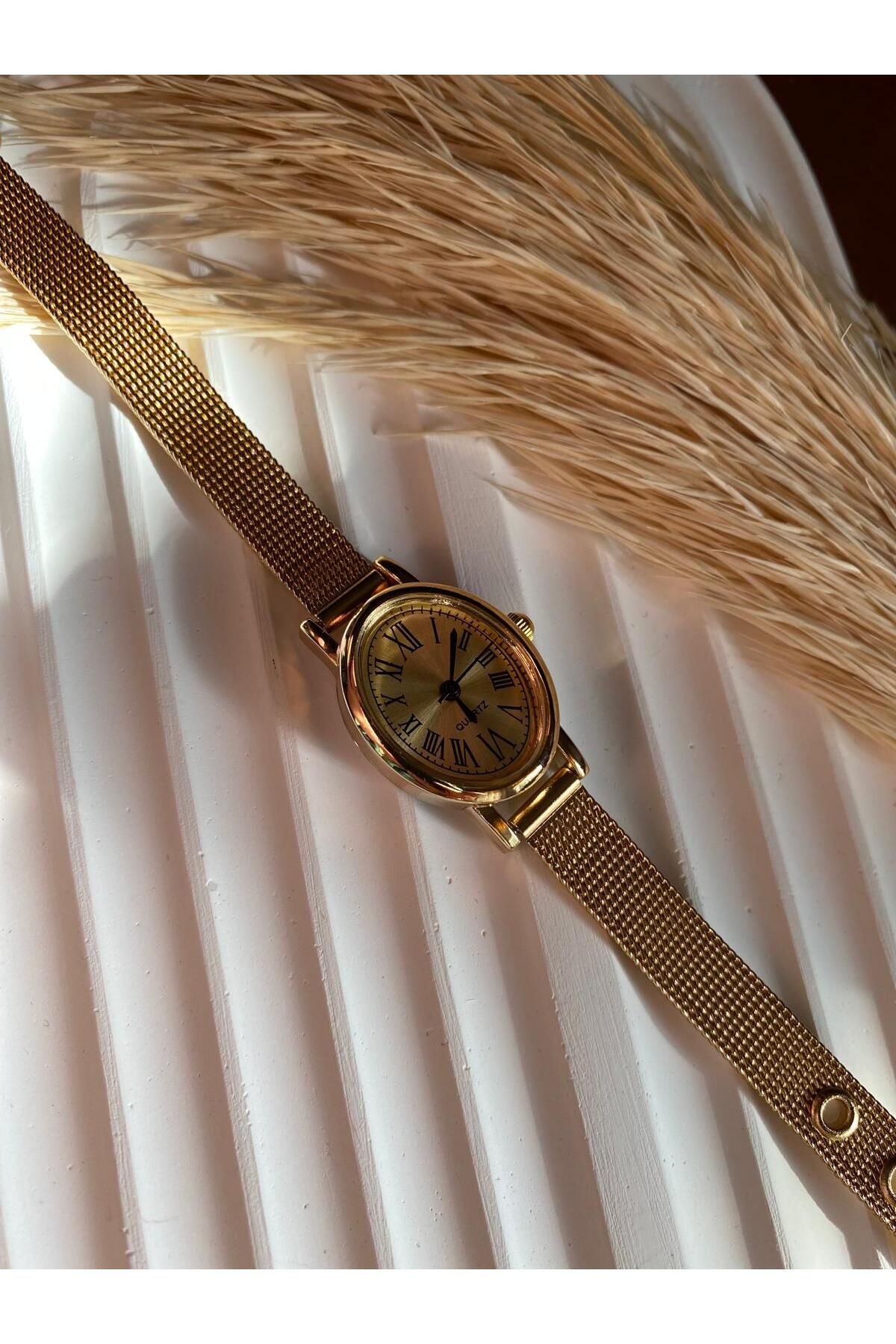 QUARTZ Rubsey Hasır Kordon Minimal Kadın Kol Saati Modern Gold Renk Vintage (ÇOK KÜÇÜK MODELDİR)