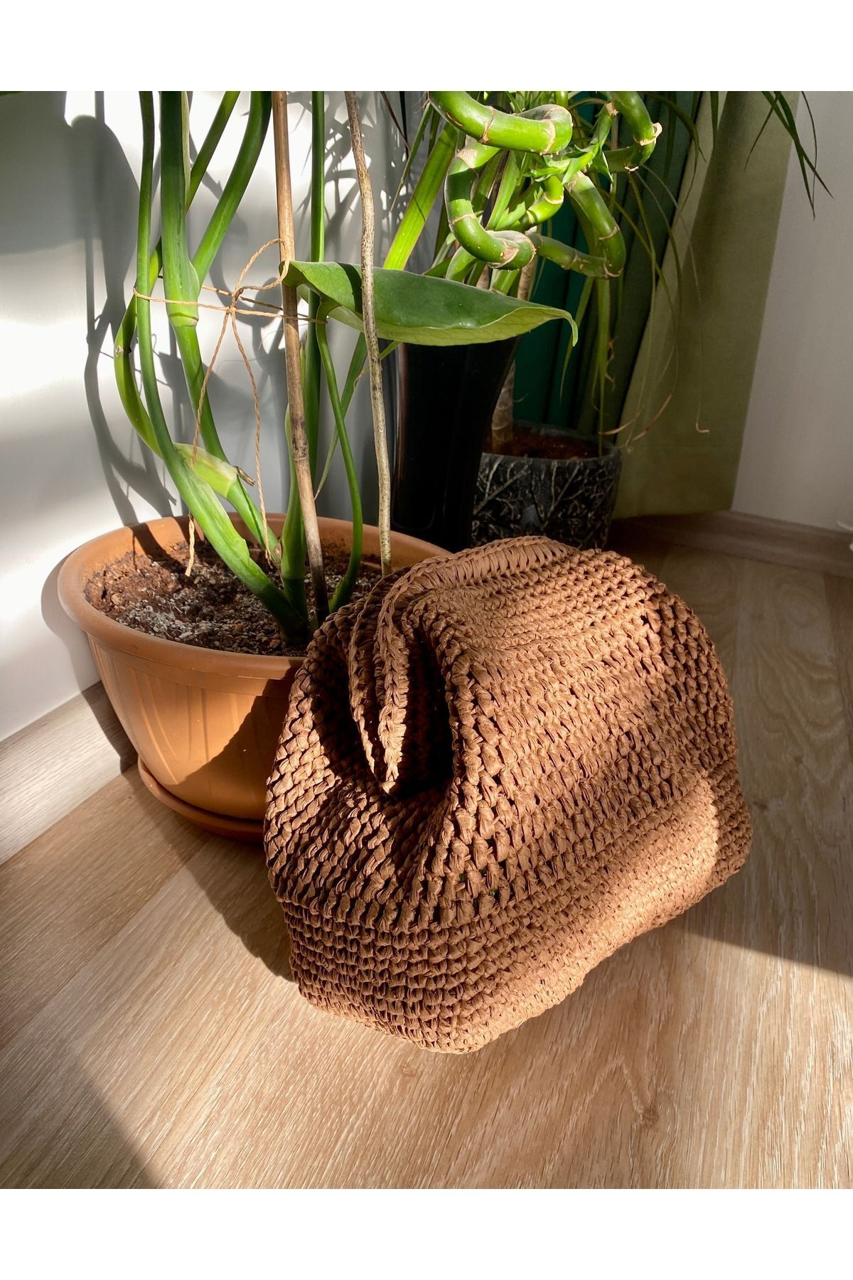 Rabika Chocolate Raffia Handbag (Çikolata Rafya El Çantası)