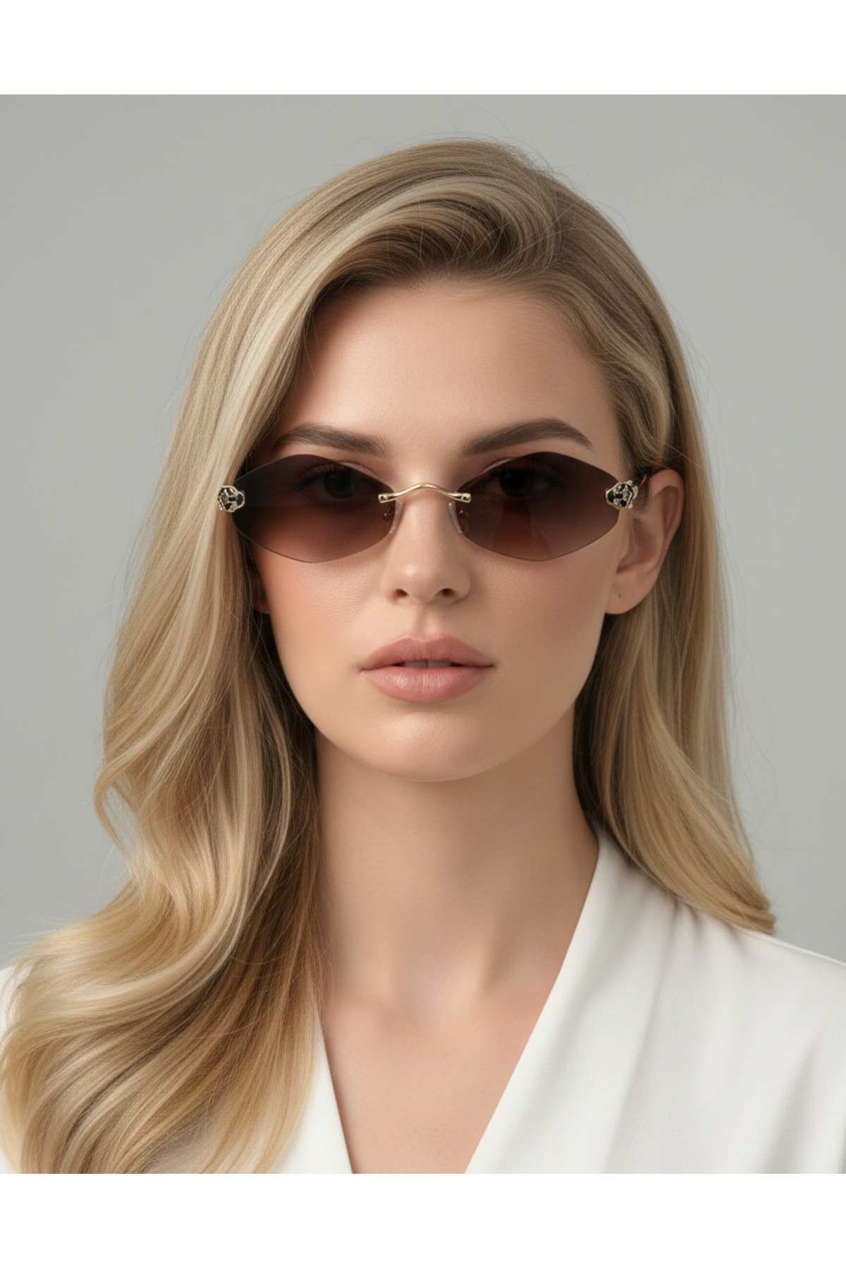 Eyesofia Hude Geometrik Yeni Sezon Popüler Kadın Leopar Kahverengi Güneş Gözlüğü