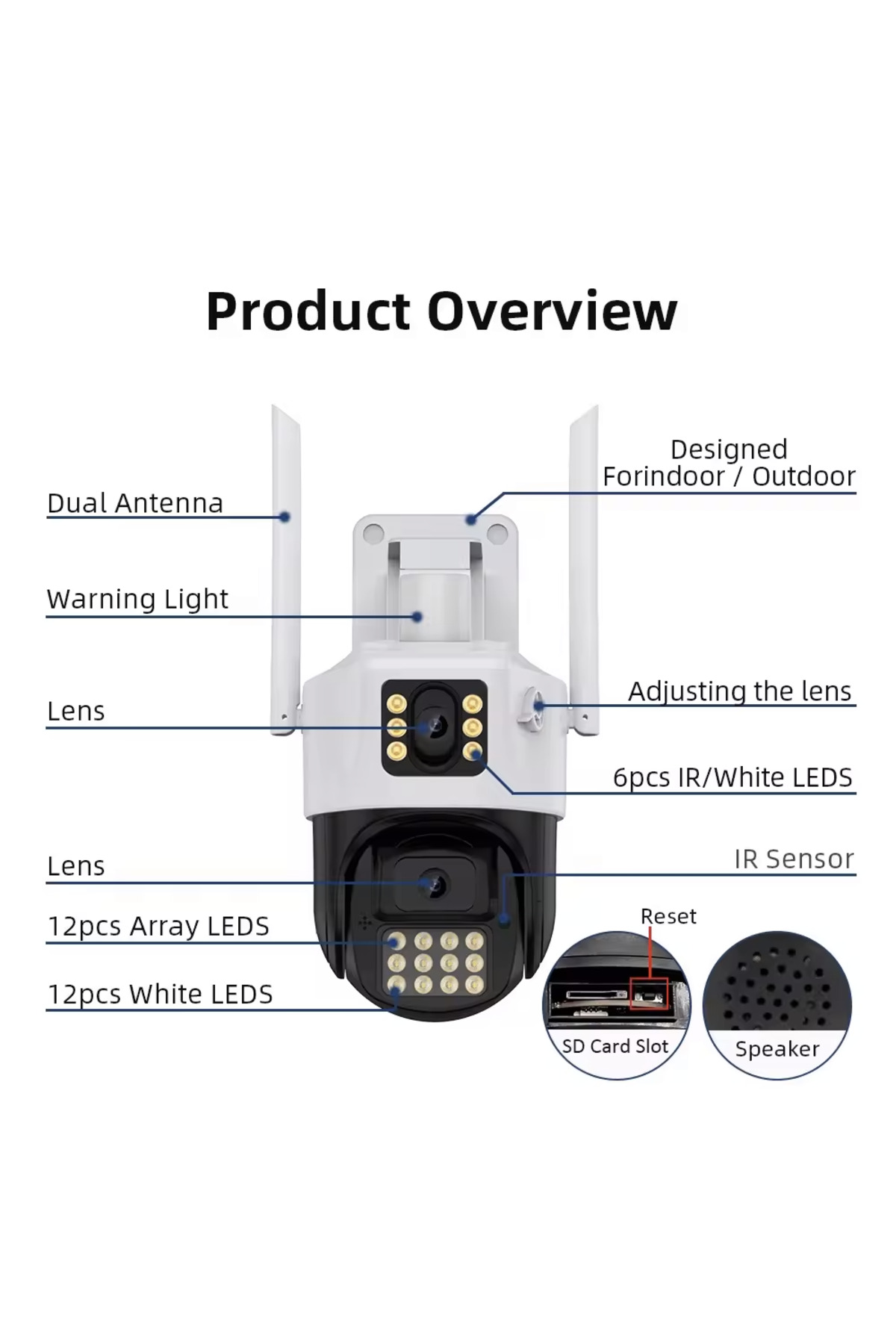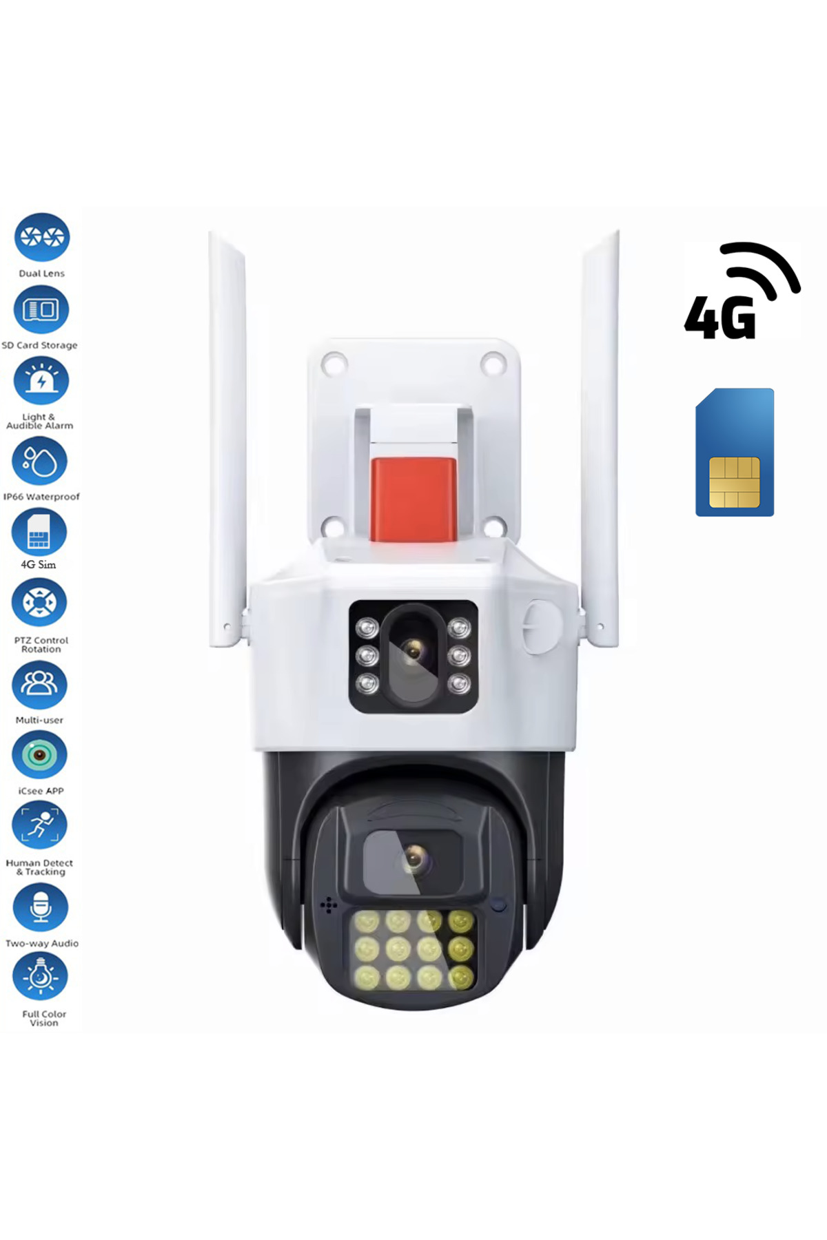 RADEX Çift Kameralı Adaptörlü 4g Sim Kartlı Hareketli Alarmlı Akıllı Güvenlik Kamerası