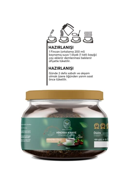 RAS DASHEN Hindiba kahve 1 aylık kullanımdır net 150gr Hazırlanış: 1 Fincan kaynamış suya , 1 ölçek kahve eklenir sonrasında karıştırılır , isteğe göre süt veya kahve kreması eklenebilir afiyetle tüketilir.