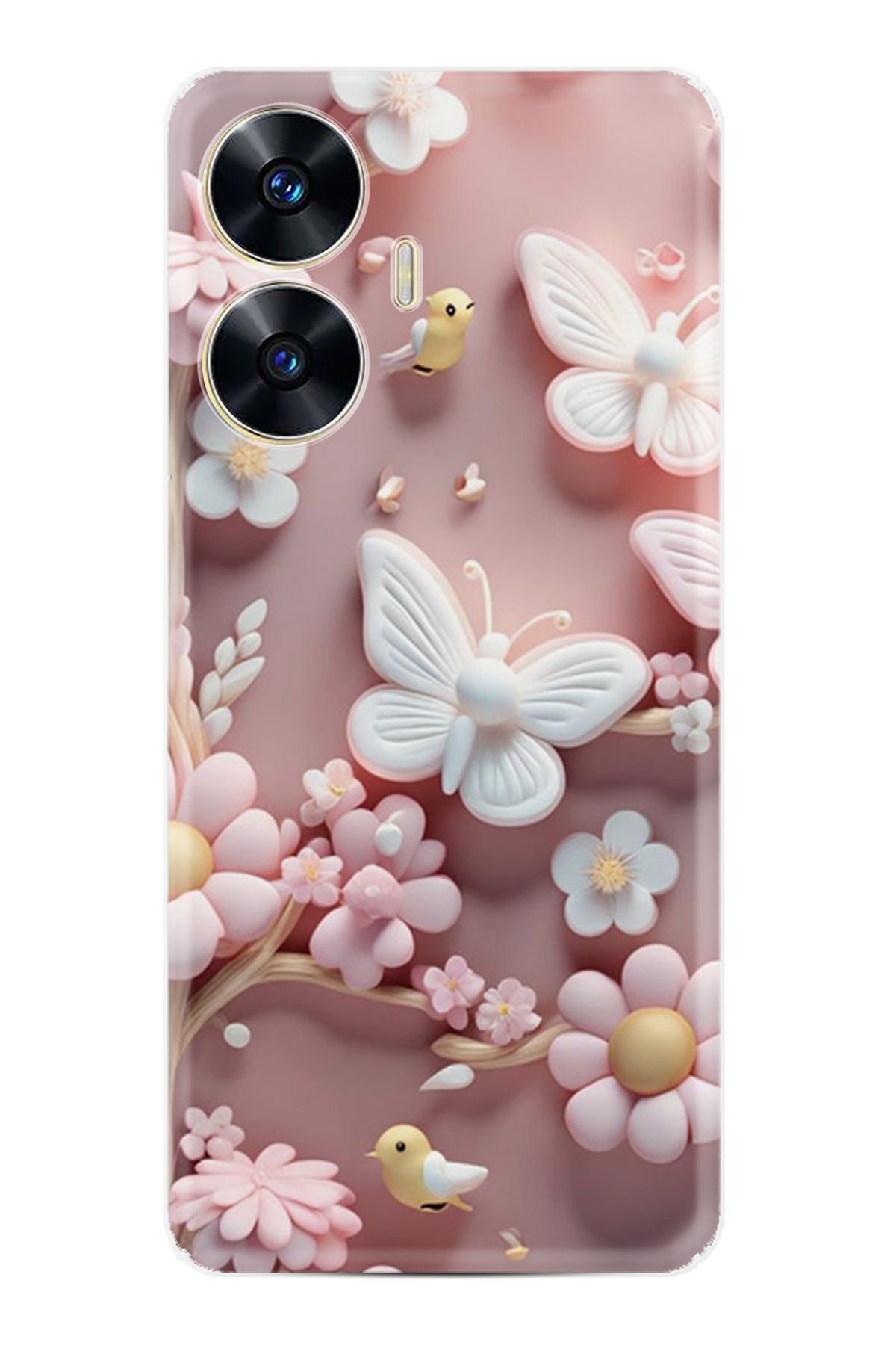 realme C55 Kılıf Boutique Baskılı Resimli Pembe Kelebekler Pcode -088