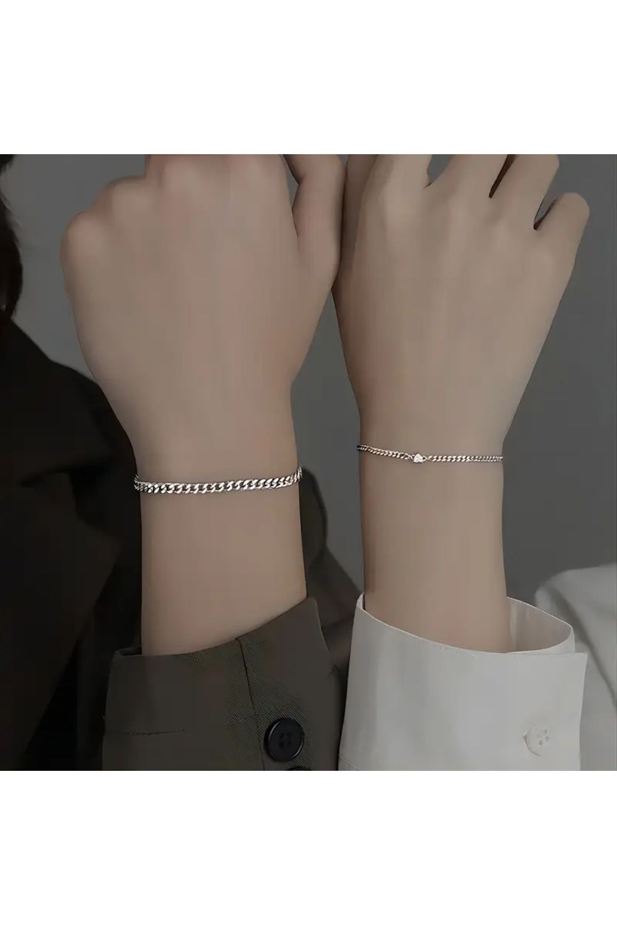 Redhead Gümüş Renk Çelik Sevgili Çift Zincir Bileklik