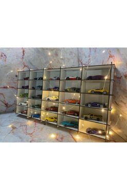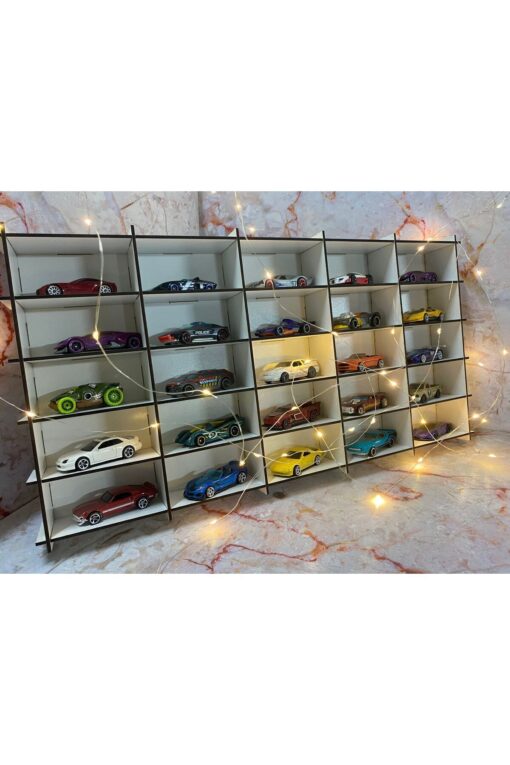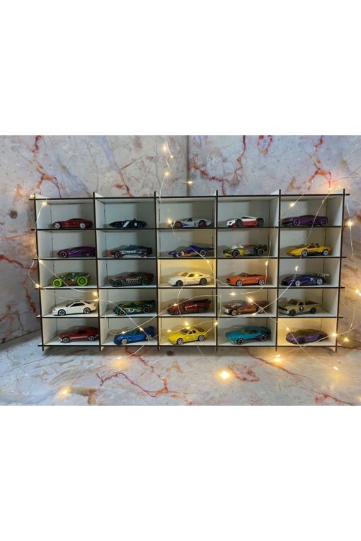 ReFason Desing Ahşap Araba Rafı 25’li Beyaz Renk (Hotwheels ve Matcbox Arabaları Için Uygundur)